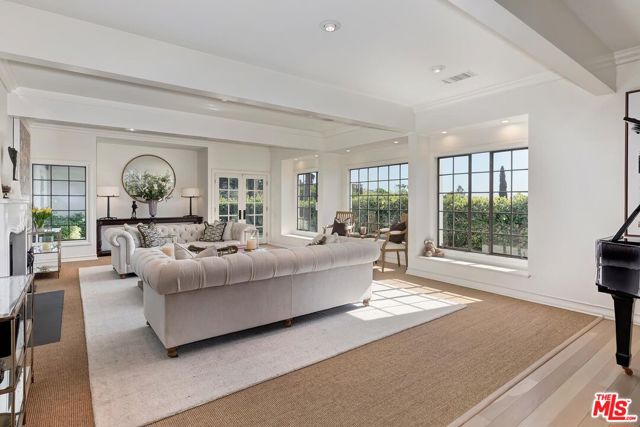 Available furnished | Short-term preferred. Rarely available in prestigious Trousdale Estates, this elegant two-story traditional residence offers expansive interiors, sweeping canyon and city views, and exceptionally large, lush grounds a true rarity in this coveted Beverly Hills enclave. Fully furnished and turnkey, the home is ideally suited for executive, relocation, or holiday residency. Set on an unusually generous lot for Trousdale, the property is defined by its expansive lawn, mature landscaping, and oversized pool with spa/jacuzzi, creating a private garden-estate atmosphere seldom found in the neighborhood. The scale and usability of the outdoor areas offer an ideal setting for entertaining, family gatherings, or quiet relaxation surrounded by greenery. A dramatic double-height entry introduces approximately 5,500 square feet of light-filled living space designed for both elegant entertaining and comfortable family living. Formal living and dining rooms feature timeless architectural detailing and fireplaces, while multiple French doors open seamlessly to terraces and gardens. The chef's kitchen is equipped with premium appliances, stone countertops, custom cabinetry, and a generous center island, flowing naturally into casual dining and family areas with direct backyard access for effortless indoor-outdoor living. A richly detailed wood-paneled office/library with fireplace provides an exceptional work-from-home environment. The home also features two separate TV/media rooms an upstairs intimate lounge and a large lower-level media room with fireplace offering ideal spaces for relaxation, screening, or family living. A dedicated massage/wellness room adds to the home's comfort and lifestyle amenities. The expansive primary suite features vaulted ceilings, fireplace, sitting area, dual bathrooms, generous closets, television, and a spa-style jacuzzi soaking tub, along with a private terrace overlooking lush grounds and city views. Secondary bedrooms are well-proportioned and thoughtfully positioned for privacy and comfort. Additional highlights include four fireplaces, three-car garage, and multiple indoor and outdoor living areas designed for refined yet relaxed living. With its rare two-story layout, substantial interior volume, and beautifully landscaped grounds, this furnished Trousdale estate offers privacy, scale, and a true garden setting just moments from the heart of Beverly Hills and the Sunset Strip. he heart of Beverly Hills and the Sunset Strip.