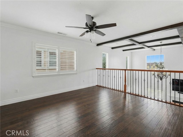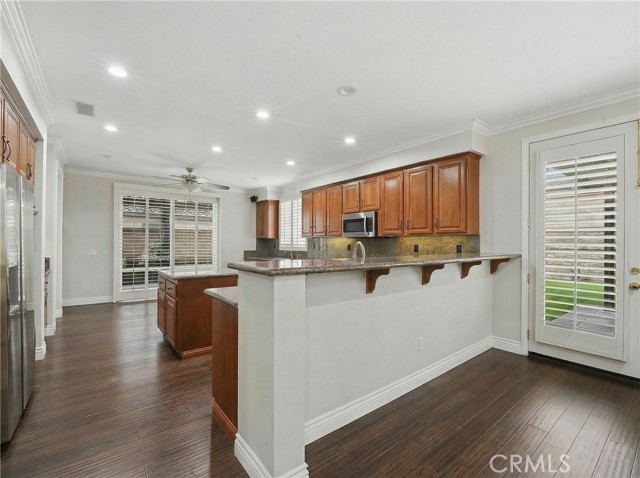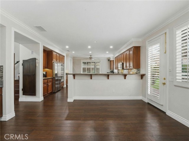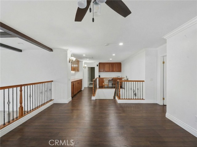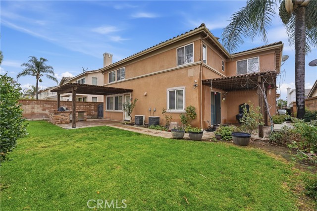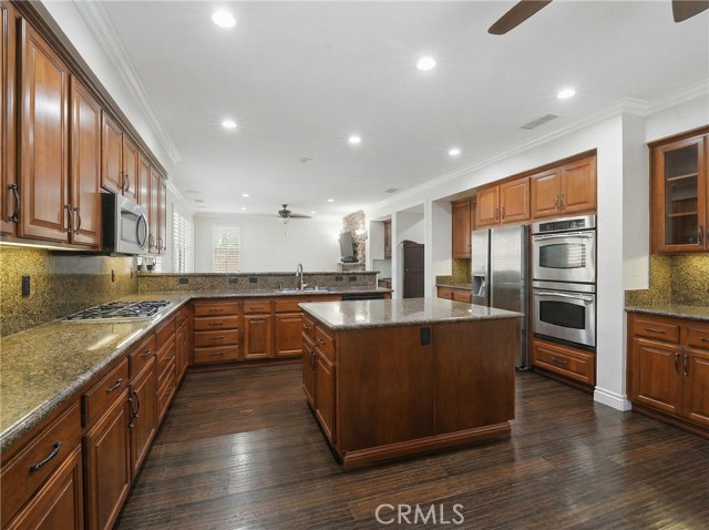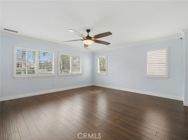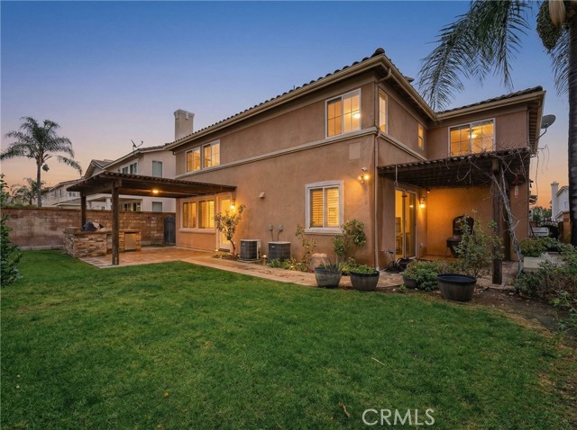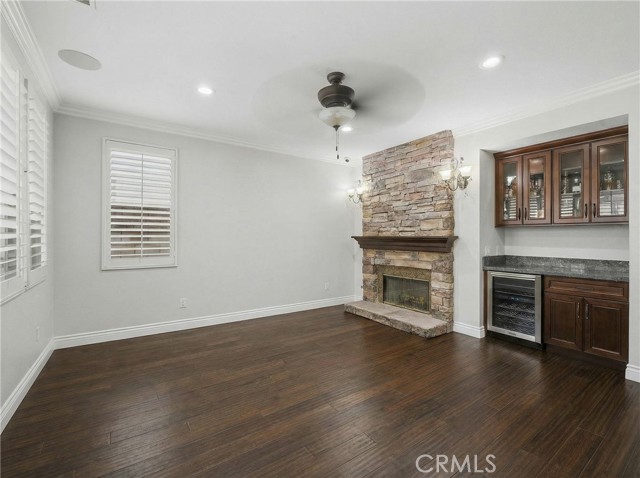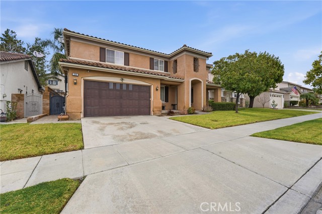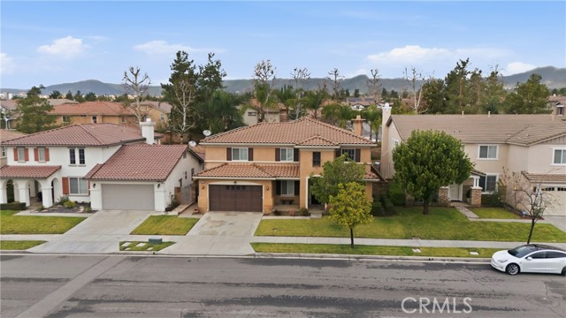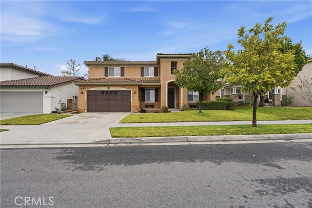 Location, Location, Location! Nestled in the highly desirable Colonies community of North Upland, this beautifully upgraded 5-bedroom, 3-bathroom home offers 3,634 sq. ft. of living space on a 6,664 sq. ft. lot. The open floor plan features expansive living and dining areas that flow into the family room, complete with a stone fireplace and built-in bar area with wine fridge. The family room opens directly to the large kitchen, creating a great space for everyday living and entertaining. The kitchen includes granite countertops, a large center island, abundant cabinetry, stainless steel appliances, double ovens, and a gas cooktop. Wood flooring runs throughout the home, with tile flooring in the bathrooms. A downstairs bedroom and full bathroom offer flexibility for guests or multigenerational living. Upstairs, you’ll find a spacious loft along with four additional bedrooms. The primary suite features two walk-in closets and a large en-suite bathroom with dual vanities, a soaking tub, and a separate walk-in shower. Additional highlights include owned (paid-off) solar panels, crown molding, recessed lighting, and plantation shutters. Located near shopping, dining, parks, the Colonies Golf Club, and convenient 210 freeway access.