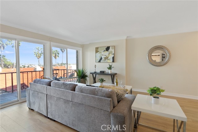 Stunning Remodeled Condo with Harbor & Mountain Views in Vista Del Oro! Wake up to breathtaking views of the harbor, the iconic Vincent Thomas Bridge, and even snow-capped mountains from this beautifully remodeled 1-bedroom, 1-bath condo perched high in the desirable Vista Del Oro neighborhood of San Pedro. Move-in ready and filled with natural light, this home features an open-concept layout with newer flooring and a bright, sun-drenched living area. Step through the sliding glass doors onto your private balcony and enjoy sweeping views, coastal breezes, and sparkling city lights in the evening. The remodeled kitchen shines with updated cabinetry, stainless steel gas stove, dishwasher, refrigerator, microwave, and even a wine fridge — perfect for entertaining. The spacious bedroom offers a large closet with ample storage, while the modern bathroom impresses with stylish flooring, stone counters, a beautifully tiled shower, and contemporary vanity. Additional highlights include one assigned space in gated community garage and storage, plus convenient elevator access. This is an exceptional opportunity to own a view property in one of San Pedro’s most sought-after hillside communities.