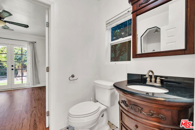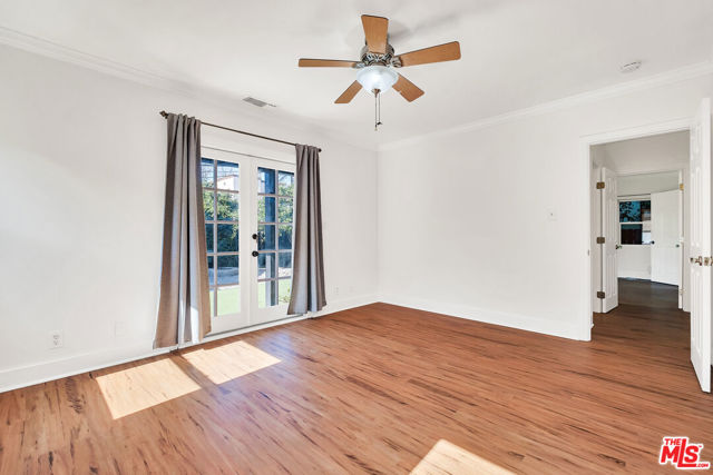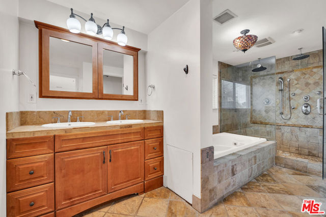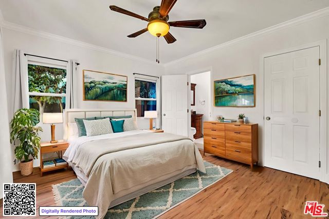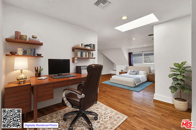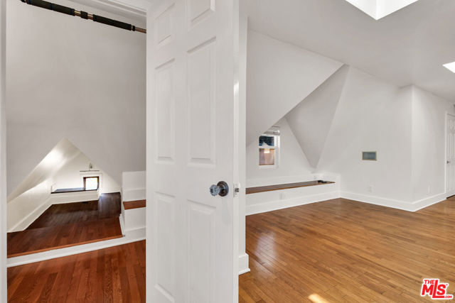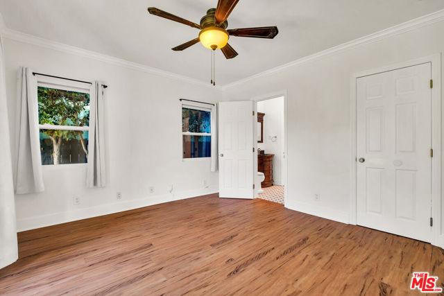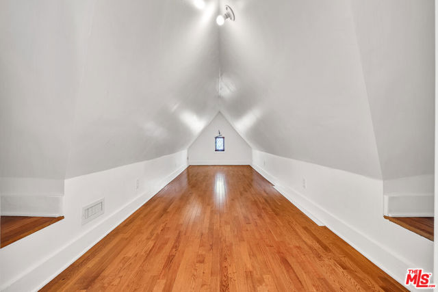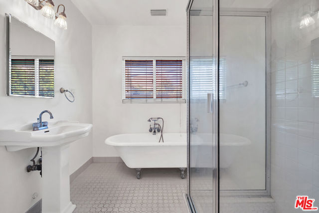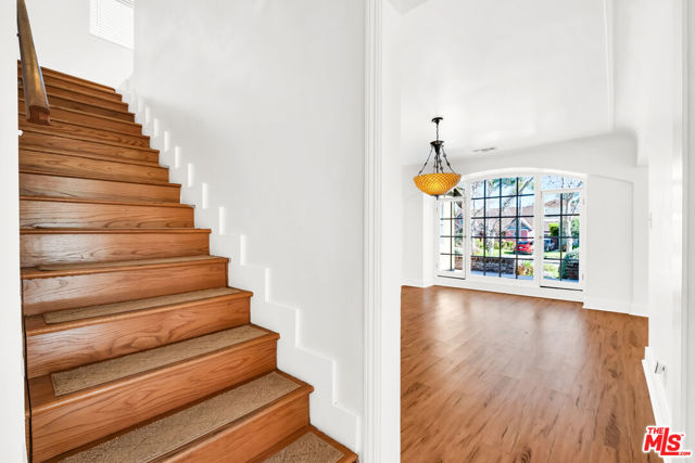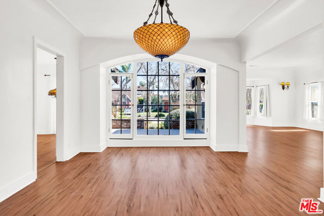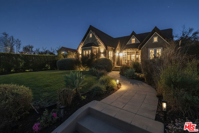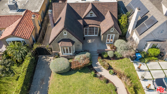 Sycamore Square storybook charmer!! Bright and airy, 4 bedroom, 3 bath, English Tudor with surprise after surprise! Up the winding pathway from the lushly tree-lined street you enter in to a sun drenched living room with an elegant coved ceiling, leaded glass windows and a wood burning fireplace. The dining room features an enormous mult-paned arched window set in it's own cove and a beautiful Tiffany style ceiling fixture. The updated kitchen includes a cozy, east facing breakfast area with a set of french doors that open out to the herb garden. 3 bedrooms down stairs including 2 that open through french doors directly out to the rear yard and one with it's own, en-suite bath and direct access to the laundry room, perfect as a maids room. Generous and varied options for storage in the hall linen closet and laundry. And speaking of storage, how about a secret wine cellar accessed beneath the remote controlled lifting stairway (!) to the second floor. Upstairs an enormous primary bedroom suite is it's own world and includes a large fitted walk-in closet, areas for an office, TV watching, reading and tons more easily accessible storage options. The sumptuous primary bath features, dual vanity, a sexy oversized spa tub and separate 2-person shower stall with dual rainfall shower heads and shower wand. An enormous 2nd story balcony across the rear is perfect for morning coffee, a little yoga or an end of the day cocktail. Outside a combination of gravel and nicely done artificial turf make for easy maintenance and great place for kids and adults. A natural gas firepit cuts the evening chill and invites conversation while a delightful vine covered pergola with built-in barbeque, sink and mini fridge offers shaded comfort. A detached 2 car garage with high pitched ceiling/roof teases options for any number of alternate uses. Sycamore Square is a wonderful neighborhood so named for the classic sycamore trees that line the streets of this pocket of beautiful Miracle Mile homes south of Wilshire. World class museums, performance venues, restaurants and shopping are all within easy walking distance and a new subway station opening at Wilshire and LaBrea, just blocks away, present an auto-free way to engage with our fair city