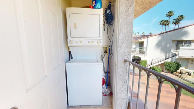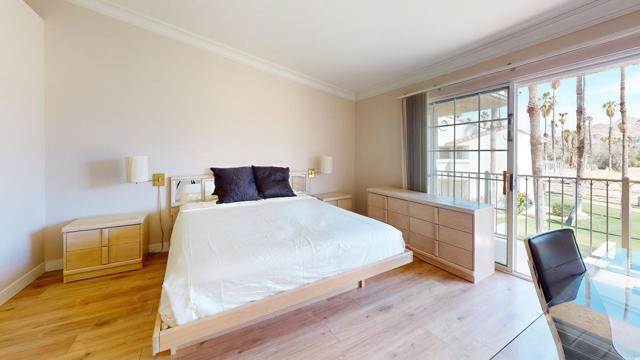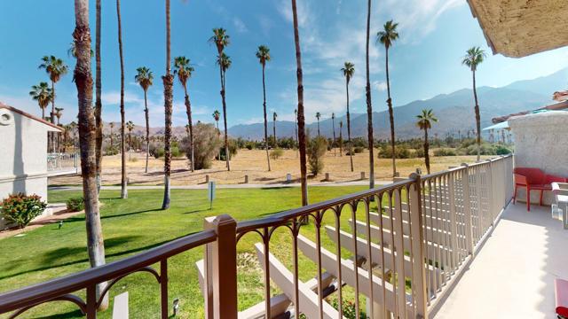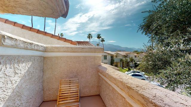 Welcome to your desert retreat at Mesquite Country Club!Just minutes from Downtown Palm Springs and its world-class shopping and dining, this beautifully appointed 2-bedroom, 2-bath condo is ready for you. Located directly across from the pool, with tennis courts a short walk away, this unit boasts stunning views from the balcony, living room, and primary bedroom.The guest room features its own private balcony with peek-a-boo mountain views, while vaulted ceilings add an airy, spacious feel throughout. Partial furnishings are included and can be kept or removed based on the renter's preferences.Don't miss this opportunity to enjoy both comfort and convenience--along with the iconic Palm Springs lifestyle.