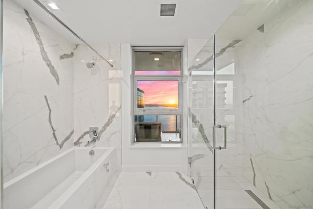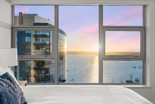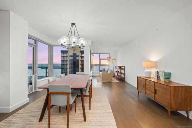 Welcome to Residence 3205, the largest and most sought-after floorplan at Savina, Downtown San Diego’s newest luxury high-rise. One of only two residences in the building with this layout, 3205 offers a truly rare opportunity and showcases sweeping southwest-facing views of the bay, city skyline, and vibrant sunsets from every room. This spacious 2-bedroom plus den, 2.5-bath home features two private balconies - one off the living room and another off the primary suite - creating a seamless connection between indoor and outdoor living. The expansive great room is ideal for entertaining or simply enjoying the panoramic views. Both bedrooms include en-suite bathrooms and large walk-in closets, while the versatile den can be enclosed to create a third bedroom or private office. A dedicated dining area adds flexibility and functionality to the open-concept layout. Additional upgrades include Lutron motorized shades throughout, with blackout and solar options in the bedrooms for added comfort and privacy. Savina offers one of Downtown’s most extensive amenity collections, including a 24-hour concierge, heated pool and spa, state-of-the-art fitness center, social lounge, business center, conference room, pet retreat, bike storage and repair station and EV charging stations - just steps from the waterfront and Little Italy.