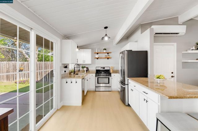 Open Saturday & Sunday 3/28 & 3/29 1-4pm! Modern upgrades, effortless style, and single-story living in the heart of Concord — 2261 Gehringer Dr delivers comfort and character in one beautifully curated package. Step inside to brand new flooring and baseboards flowing throughout, complemented by dual-pane windows and sliders that flood the home with natural light. The kitchen makes a statement with granite countertops and stainless steel appliances, while both bathrooms have been thoughtfully renovated with clean, modern finishes. Solar panels and an EV charger bring efficiency into the spotlight, and the vaulted open-beam ceilings with shiplap in the living room add just the right touch of architectural charm. Out back, the energy shifts into full-on entertainer mode with an open, inviting yard designed for gathering and unwinding, complete with a putting green and fire pit that turn ordinary evenings into something worth lingering over. All just minutes from downtown, I-680, and the always-loved Todos Santos Plaza — polished, practical, and carrying just the right amount of edge, this is Concord living done right.