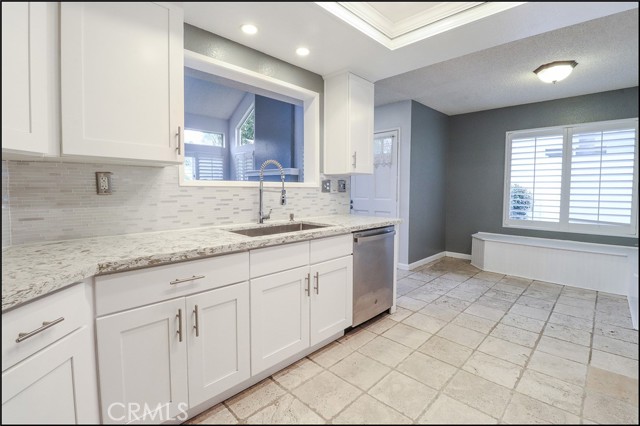 SPECTACULAR END UNIT LOCATION WITH A HUGE WRAP AROUND YARD PERFECTLY LOCATED WITH AMAZING VIEWS OF THE PARK AND A SPACIOUS FLOOR PLAN! Exceptional property offering a uniques end unit two story townhouse style floor plan with large living and dinging room, fireplace and two story ceilings in the living areas with large window to pour in plenty of natural light. Kitchen has been upgraded with white cabinets, stone countertops, designer backsplash, stainless steel appliances including refrigerator, contemporary style sink, designer faucet, recessed lighting and opens to the dining room with custom built-in cabinets, seats and drawers. There is also a large powder room, direct access to the attached garage and sliding door access to the large and inviting back yard. Second story offering a spacious master suite with vaulted ceilings, large closet and bathroom featuring a large vanity with stone countertop, walk-in shower and upgraded fixtures. Second bedroom overlooking the large yard and amazing views of the park and second full bathroom at hallway with upgraded vanity, designer mirror and upgraded fixtures. Huge wrap around yard with lawn area, planters with tropical landscaping, large patio are with cover and an amazing view of park and greenbelts. Resort style community pool, spa, clubhouse, tennis, sports courts, highly sought after schools, excellent proximity to Aliso Viejo Town Center, easy toll road (73) and beach access (via 133) and nearby hiking, biking and nature trails!