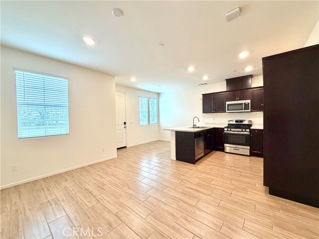 Beautiful home located in The Townes Community of Menifee! This home features 2 bedrooms, 2.5 bathrooms, a LOFT, 2 car garage and has a charming front courtyard entry. The main level features an open concept layout, creating a spacious and inviting atmosphere. The kitchen is highlighted with cherry oak cabinets, providing a touch of elegance and ample storage space for your kitchen essentials., stainless steel appliances and seamlessly opens to the dining area and living room, allowing for easy interaction while entertaining. The main level also offers a half bath and direct garage access. After coming up the stairs, you will be met with the loft area, which can serve as a space for various purposes such as an office, entertainment area, or another living space. Additionally, the remaining bedrooms and bathrooms are located on the 2nd floor, as well as the laundry room for added convenience. The spacious Primary bedroom features a large walk-in closet and has an ensuite bathroom with dual sinks and a shower. Secondary bedroom is a good size and is adjacent to a full bathroom with a shower and tub combination. This beautiful home provides a combination of functionality, style and comfort with its open concept and is conveniently located near Parks, Schools, Shopping, Dining and Entertainment!