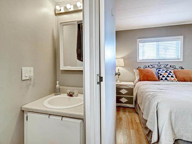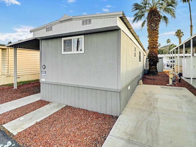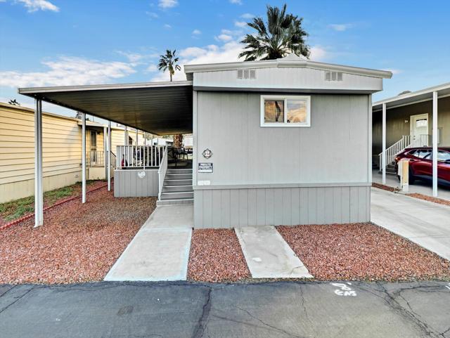 Welcome to 3 Hoover in Tramview Mobile Park, a move-in ready home offers comfort, upgrades, and exceptional value in an amazing central location. Close to dining, shopping, golf, hiking and the airport. There is nothing not to love about this property. The exterior is designed for effortless desert living. Enjoy a low maintenance patio, a raised and covered deck complete with patio furniture and BBQ included, plus a full driveway for easy parking. The outdoor dining space makes entertaining simple and enjoyable year round.Inside, the spacious two bedroom layout feels open and inviting. The beautiful kitchen offers abundant storage and tile flooring. The bathroom has been thoughtfully updated with designer tile, fresh paint, and the convenience of a separate tub and shower. Tile and laminate flooring throughout add to the clean, cohesive look. Everything you could want including an exterior shed that has every screw, bolt, or anything else you might need! Located in Tramview Mobile Park, a lovely and vibrant community. There is always something to do and the sense of belonging and fun is unmatched. Affordable desert living at its finest.