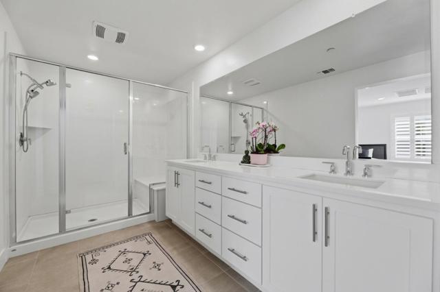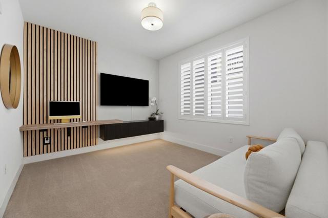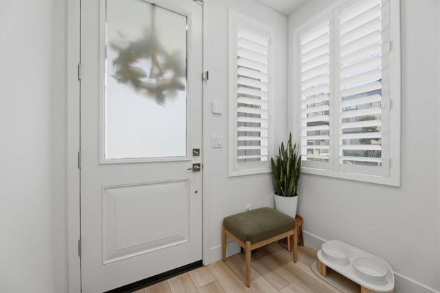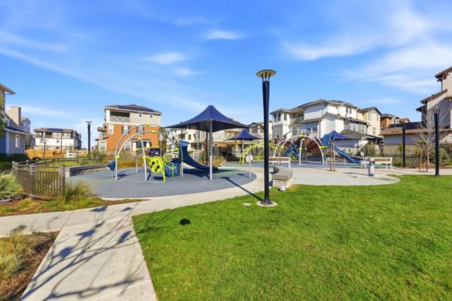 Modern Luxury Meets Effortless Living! Welcome to this stunning 3-year-new northeast-facing home featuring 3 bedrooms, 3.5 bathrooms, and fully paid solar for energy-efficient living. Thoughtfully designed with elegant finishes and an open, functional layout, this home combines modern comfort with timeless style. The first-floor guest or office suite offers flexibility for visitors or remote work. Upstairs, the chefs kitchen showcases a quartz island, upgraded stainless steel appliances, and ample storage, seamlessly connecting to the open living and dining areas that flow to a covered patio, perfect for indoor-outdoor entertaining. Upgrades include luxury vinyl plank flooring, custom wooden shutters, automatic window treatments, and a finished garage with epoxy floors and built-in cabinets. The low-maintenance backyard features turf and a built-in deck for relaxing or hosting. Located in the desirable Bridgeway community with a clubhouse, pool, dog park, and playground. Conveniently close to Don Edwards Wildlife Refuge, Meta, Tesla, Dumbarton Bridge, and I-880. Some furniture may be included for a move-in-ready experience!