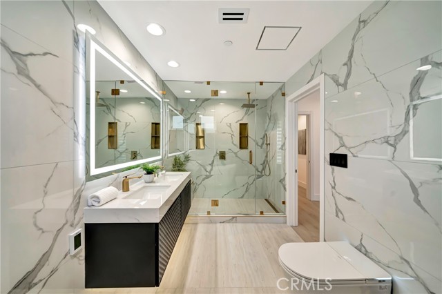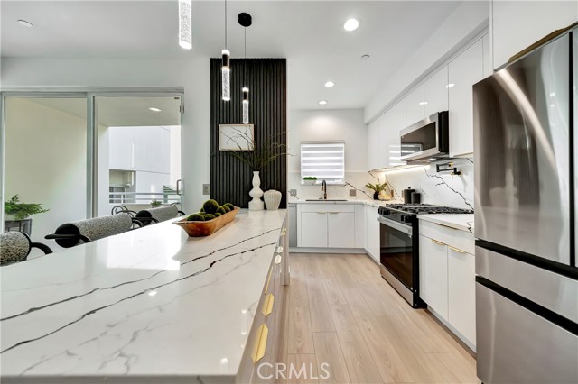 Unlock this exceptional, fully remodeled luxury townhouse in the beating heart of West Hollywood, just moments from the Beverly Hills border and less than a minute from iconic Sunset Boulevard. This stunning nearly 2,000 sq ft, 3-bedroom, 2.5-bath residence has been thoughtfully redesigned with elevated finishes and modern sophistication throughout. World-famous destinations including the Rainbow Bar & Grill, Whisky a Go Go, and The London West Hollywood, are just a short walk away, with Sunset Plaza and Hollywood’s most iconic landmarks minutes from your door—placing you at the epicenter of LA’s vibrant lifestyle, nightlife, and glamour. Step into soaring living spaces with dramatic high ceilings, drenched in natural light and opening to a private patio wrapped in lush greenery. The dining area flows seamlessly to its own balcony, blending indoor elegance with outdoor living. Recessed lighting, designer wall fixtures, LED-lit staircases with smart motion sensors, and a built-in whole-home sound system create a refined yet effortlessly cool ambiance throughout the home. The brand-new European-style kitchen showcases gorgeous countertops and premium, never-used high-end appliances, designed for both everyday living and elevated entertaining. Every bathroom has been completely rebuilt into a spa-like retreat with radiant heated floors, smart toilets, smart mirrors, and cutting-edge shower systems delivering everyday luxury. The primary suite offers a serene escape with a spacious en-suite bath and walk-in closet, while the second bedroom features its own full bath and walk-in closet. Crowning the home is the show-stopping rooftop deck—your private urban oasis—featuring a custom deck, plush artificial turf, and breathtaking panoramic views sweeping across the entire Los Angeles skyline. Twinkling city lights, open skies, and total privacy create the perfect setting for sunset cocktails, entertaining under the stars, or simply taking in the energy of the city from above. A private, fully redone 2-car garage adds rare convenience in this prime location. Turnkey, fully upgraded, and zero work needed—this is not just a townhouse, it’s your front-row seat to Sunset. This is where you stop searching and start living.