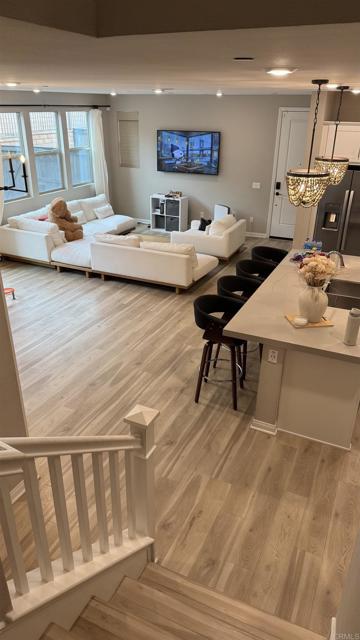 Beautifully maintained FORMER MODEL HOME located at a newer Cota Vera community. It features a generously size yard and convenient access to additional street parking. This turnkey home showcases impressive upgrades throughout, including a downstairs bedroom and full bath - perfect as a fourth bedroom or guest suite. Enjoy a spacious open layout with vinyl plank flooring, plush carpet in the upstairs bedrooms, abundant natural light, crisp white kitchen cabinetry. The kitchen offers ample counter space and breakfast bar that seamlessly flows into the family room- ideal for everyday living and entertaining. The primary suite features a walk-in closet and decorative accent walls, adding warmth and character. The low maintenance yard makes outdoor living easy and enjoyable. Conveniently located near parks, scenic trails, Otay Ranch town center, popular dining options, and quick access to the state route 125 freeway.
