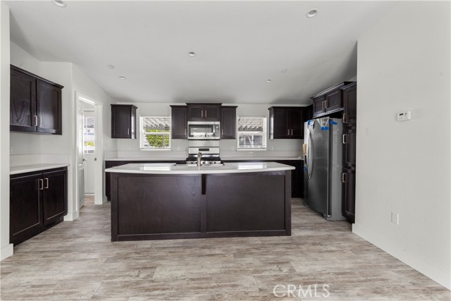 Stunning New 3-Bedroom Home with Golf Course Community Amenities! Welcome to this beautifully designed new manufactured home offering 3 bedrooms and 2 full bathrooms in a desirable golf course community. Built with 2" x 6" exterior walls for enhanced insulation and energy efficiency, this home combines quality construction with modern style and comfort. Step inside to an inviting open floor plan featuring a spacious living area that flows seamlessly into a chef-inspired kitchen. The kitchen boasts a large center island, elegant quartz countertops, stainless steel farmhouse sink, and a full suite of stainless steel appliances including a gas range, microwave, dishwasher, and refrigerator with ice and water dispenser. A generous walk-in pantry provides exceptional storage. The thoughtfully designed split floor plan offers privacy, with the luxurious primary suite situated on one side of the home and the two additional bedrooms on the opposite side. The primary retreat features a large walk-in closet, dual vanity sinks, a walk-in shower, and a relaxing soaking tub. Additional highlights include: Tankless water heater Fire sprinkler system Covered front porch Dual carports Custom 10' x 12' shed Masonry block wall around the perimeter Beautifully landscaped front yard Enjoy resort-style living with access to the community golf course and clubhouse amenities, including two swimming pools, a jacuzzi, pickleball courts, and shuffleboard. Conveniently located near shopping, dining, and just minutes from Agua Caliente Casino, as well as the vibrant destinations of Rancho Mirage and Palm Springs. This home offers the perfect blend of comfort, style, and location — an exceptional opportunity you won’t want to miss!