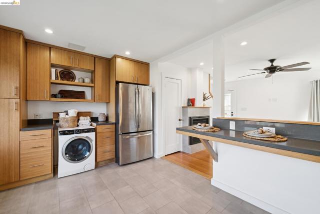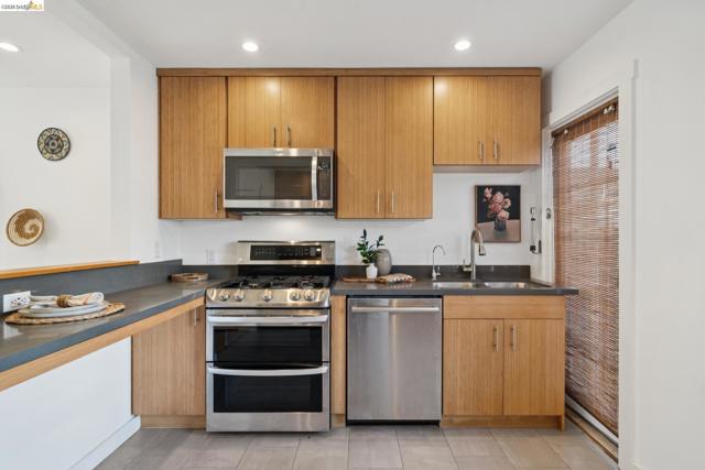 Beautifully remodeled sunny unit in Atchison Village complete with charming outdoor spaces. The lower level boasts a light-filled kitchen and living room area with gas fireplace. The kitchen leads onto the back patio space with room for gardening and gatherings with guests. Upstairs are two bright bedrooms and one remodeled bathroom. This lovely home includes dual pane windows, remodeled kitchen and bath, updated electrical and plumbing, sound proofing and original pine wood floors. Close to BART, Kaiser Hospital, hiking trails and Point Richmond. A rare find!
