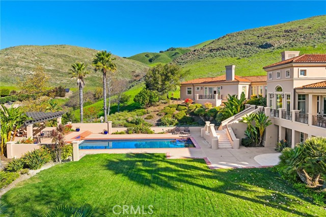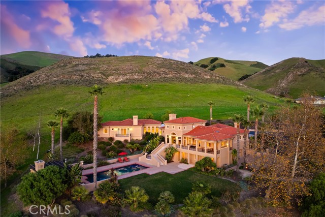 Welcome to your private Mediterranean retreat in the coveted, gated Edna Ranch community. Nestled on 1.7 acres of pristine land surrounded by vineyards and rolling hills, this extraordinary estate offers unparalleled views of picturesque Edna Valley, blending timeless elegance with modern luxury. Edna Ranch is a truly unique community, encompassing 1,600 preserved acres of open space, lush vineyards, gentle meadows, mountain creeks, charming chaparrals, and stunning natural canyons. This privately-owned open space preserve is home to only 51 homesites, each thoughtfully designed to harmonize with the natural contours of the land. The result is an unmatched sense of serenity and privacy. Step inside the grand foyer and be greeted by soaring ceilings and expansive windows that flood the home with natural light and views. The main level is an entertainer's dream, featuring a spacious living room with fireplace, wet bar with seating, dining area, and seamless access to the family room with built-ins and a gas fireplace. Located just off of the family room is the chef's kitchen with breakfast nook, island, cabinet-faced appliances, walk-in pantry, and access to the expansive view deck complete with dining area, built-in BBQ kitchen, and stairs leading to the pool area and backyard oasis. This home is equally suited for work and play. A billiard room with custom built-ins, an executive office, and a bonus room offer versatile spaces to relax or stay productive. The main level is also home to three guest bedrooms, each with en suite bathrooms and walk-in closets. Retreat to the spa-like primary suite, where luxury abounds with a private balcony showcasing breathtaking views, a gas fireplace, dual walk-in closets, dual vanities, jetted tub, and walk-in shower. The lower level continues to impress with a temperature-controlled wine cellar, gym, guest bedroom with en suite bathroom, and 4-car garage. This home also features 48 owned solar panels, offering an eco-conscious and energy-efficient lifestyle. Step outside to your personal paradise, where manicured grounds include a heated pool and spa, outdoor fireplace room with wood-burning fireplace, grassy lawn, outdoor shower, fenced orchard with garden, and space to potentially build an ADU. This estate is more than a home—it's a lifestyle. Experience the perfect harmony of elegance, privacy, and convenience, all within the rare and remarkable backdrop of Edna Ranch—just moments from the best of wine country living.