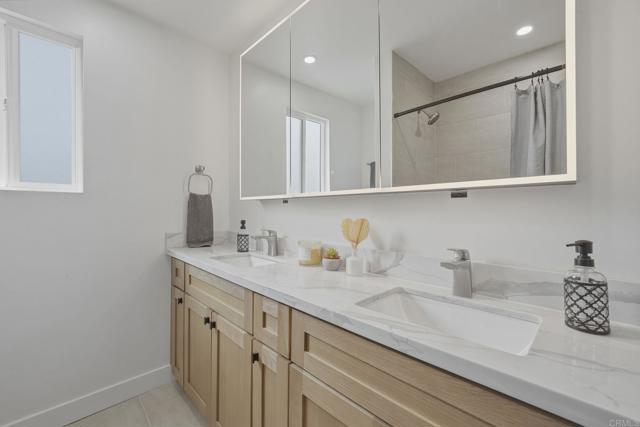 Welcome Home. This impeccably remodeled residence blends modern sophistication with timeless charm, all set in a great neighborhood and now offered at $899,000. At the heart of the home is a stunning designer kitchen featuring sleek quartz countertops, a spacious island, stainless steel appliances, and abundant cabinetry — perfectly suited for both everyday living and effortless entertaining. The kitchen flows seamlessly into a bright and airy living room enhanced by stylish new flooring and updated light fixtures, creating a warm yet contemporary atmosphere. The thoughtfully designed layout includes a desirable junior master suite with its own half bath, ideal for guests or multigenerational living. The primary master suite serves as a private retreat, complete with a double-sink vanity, expansive walk-in closet, and beautifully renovated en-suite bath showcasing designer tilework and luxurious finishes. New windows and custom blinds fill the home with natural light while providing comfort and privacy. Additional upgrades include brand new central heating and air conditioning for year-round efficiency and peace of mind. Step outside to your private outdoor patio with a beautiful view — the perfect setting for morning coffee, quiet evenings, or hosting friends. Move-in ready and finished with exceptional attention to detail, this home offers the perfect balance of modern upgrades, functional layout, and classic warmth.