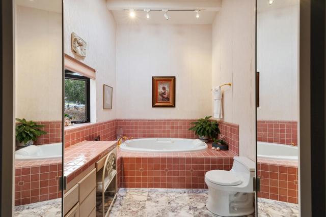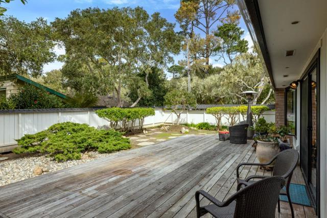 Your Pebble Beach home awaits you. This lovely, single-level, 3-bedroom, 2-bath home with 2-car garage is situated on a beautiful lot with a meticulously-landscaped yard in a quiet neighborhood nestled next to a serene forested greenbelt. Lush green lawn and Japanese Maple tree in front yard greet you as you walk along the paver walkway to the front door. Large dining room that could be combination family room/dining room overflows into tastefully updated living room. Window seats on either side of living room fireplace look out to lovely manicured gardens surrounding backyard deck. Primary bedroom has beautiful rose-colored tiled bathroom with over-sized tub and walk-in closet. Mirrored and lighted bedroom closets. Vaulted ceilings throughout with skylights in most rooms fill this home with lots of natural light. Garage with workbench and sink complete the picture. Updated in 1998, this home is awaiting your decorating flare to make it your own.