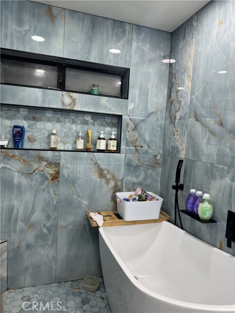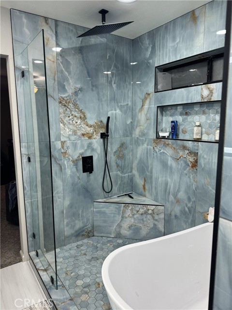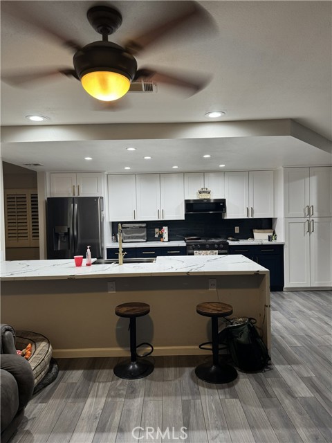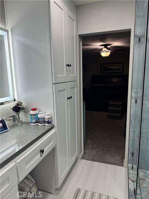 Welcome to 39657 Baldi Court — a beautifully updated single-story home that combines timeless curb appeal with modern upgrades throughout. From the moment you arrive, you’ll appreciate the charming Tudor-style exterior and inviting presence on a quiet cul-de-sac in desirable Cherry Valley. Step inside to discover a fully remodeled interior featuring wood-look tile flooring, recessed lighting, and an open, flowing layout ideal for both everyday living and entertaining. The kitchen is the heart of the home, showcasing crisp white shaker cabinetry, rich navy lower cabinets, striking quartz countertops with waterfall bookend, stainless steel appliances, a farmhouse sink, and a large island — perfect for gatherings. The bathrooms have been thoughtfully renovated with upscale finishes. The primary suite offers a spa-inspired retreat with a custom walk-in shower wrapped in dramatic floor-to-ceiling designer tile, a rain shower head, sleek black fixtures, dual vanities with illuminated and heated mirror, and modern cabinetry. Secondary bath upgrades continue the clean, contemporary aesthetic with a vessel sink and quartz countertop. Enjoy a two car oversized garage with additional attic storage. The backyard is a true private oasis. Enjoy evenings around the custom fire pit or relax by the Pebble Tec finished pool, complete with solar heating for extended swim seasons. The covered patio creates a comfortable space for outdoor dining and entertaining, while pool lighting adds a beautiful ambiance at night. This home is move-in ready and ready to enjoy. Seller is a California licensed real estate agent