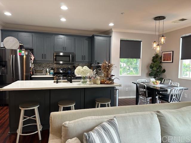 Welcome to this beautifully upgraded and meticulously maintained tri-level home in the heart of Otay Ranch. Ideally located in a highly desirable and central neighborhood, this residence offers both comfort and convenience. The entry level welcomes you at the front door with direct access to the attached garage. Upstairs on the main living level, you’ll find a bright and open layout featuring the living room, dining area, upgraded kitchen, private balcony, a bedroom, and a full bathroom, perfect for guests or a home office. The top floor is dedicated to a spacious and private primary suite, offering a peaceful retreat. Thoughtful upgrades throughout include a modernized kitchen, updated flooring, crown molding, and enhanced bathroom cabinetry and fixtures. Enjoy the convenience of being within walking distance to the Otay Ranch Town Center, major shopping, dining, and several Chula Vista community parks. Residents also enjoy access to private community amenities including two pools, a clubhouse, and BBQ areas. Please contact Erick Espinosa at 619-735-5700 with any questions.