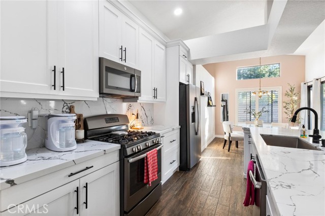 Welcome to 22901 Springdale Dr. in Moreno Valley! This beautifully upgraded single-story corner-lot home offers nearly 1,200 sq. ft. of living space featuring 3 bedrooms and 2 bathrooms, all situated on an almost 6,000 sq. ft. lot. Step inside to tall ceilings that create an open and airy feel throughout. The home is loaded with upgrades, including stylish wood tile flooring and a beautifully remodeled kitchen featuring white shaker cabinets, quartz countertops with a full quartz backsplash, and upgraded appliances — including the refrigerator. The washer and dryer are also included, making this home truly move-in ready. A dedicated dining area is conveniently located just off the kitchen, perfect for everyday living and entertaining. Additional improvements include an upgraded HVAC system for enhanced comfort and efficiency, tastefully upgraded bathrooms, elegant window shutters, and garage cabinetry inside the attached two-car garage. The private backyard is designed for relaxation and entertaining, featuring an above-ground pool, above-ground spa, artificial turf for low-maintenance living, covered patio, vinyl fencing, and block walls. Conveniently located near local shopping centers, grocery stores, schools, and offering easy freeway access. Best of all — NO HOA! This move-in-ready single-story corner-lot home truly checks all the boxes. Be sure to scroll down and checkout the 3D tour and video tour!