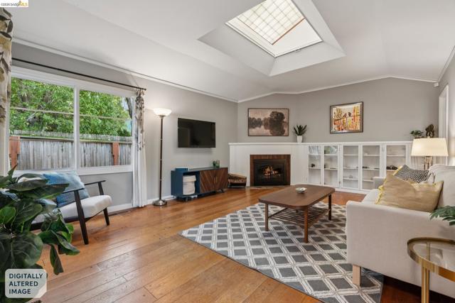 Charming California bungalow on a tree-lined street featuring hardwood floors, a skylit living room with fireplace, updated kitchen and baths, and a light-filled dining room. Enjoy views of SF and Oakland from the primary suite, and rear bedroom and backyard. plus mature drought-tolerant landscaping, basement storage, garage with EV charger, and dedicated laundry. Conveniently located in the Upper Laurel near Highways 13 and 580, with easy access to neighborhood shops and restaurants.