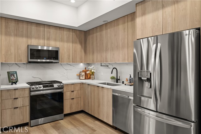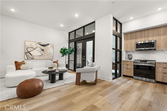 Modern Luxury with the Largest Private Patio in the Building – Prime Pasadena Location Welcome to 178 S. Euclid Avenue #105, a sophisticated ground-level residence in one of Pasadena’s premier contemporary buildings. Ideally situated in the heart of the Playhouse District, this home offers modern design, vibrant city access, and the largest private patio in the building—courtyard-facing at the rear for added privacy and quiet. This light-filled 1-bedroom, 1-bath condominium features soaring ceilings, sleek dark metal finishes, and light oak-tone flooring that brings warmth and style to the modern interior. The open-concept kitchen flows seamlessly into the living area and out to the expansive private patio, creating a true indoor-outdoor lifestyle ideal for relaxing or entertaining. The modern kitchen is equipped with premium Samsung stainless steel appliances, generous cabinetry, and clean contemporary lines. The spacious bedroom includes an upgraded designer walk-in closet with custom built-ins for exceptional organization and storage. The spa-inspired bath features refined finishes and stylish fixtures. In-unit laundry adds everyday convenience. Additional amenities include: • 1 assigned parking space in secure underground garage • 1 dedicated storage space • Digital/keyless building entry • Shared resident lounge/work space • Beautifully landscaped, sustainability-focused courtyard Located directly across from the Pasadena Convention Center, Civic Auditorium, Equinox, and Ice Skating Center, and moments from world-class dining, shopping, and cultural destinations. The Metro A Line is just blocks away, offering convenient access to Downtown Los Angeles and beyond. Unit #105 combines privacy, modern comfort, designer upgrades, and exceptional outdoor space in one of Pasadena’s most vibrant neighborhoods.