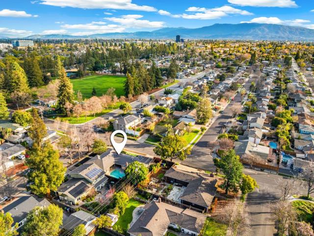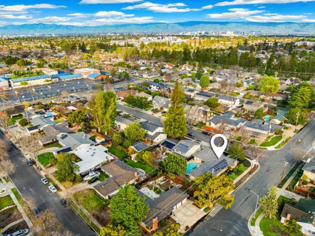 Located on an expansive over 9,000 sq ft corner lot, this beautiful 5-bed, 3-bath home offers over 2,400 sq ft of thoughtfully designed living space, blending timeless character with modern functionality in a prime Silicon Valley location. French doors welcome you into a light-filled living room highlighted by expansive windows and seamless indoor-outdoor flow. The spacious kitchen is designed for both everyday living and entertaining, featuring a large central island, 6-burner gas range, abundant cabinetry, and generous pantry storage. Direct access from the kitchen leads to a private backyard retreat complete with a sparkling pool, perfect for effortless indoor-outdoor gatherings. The primary suite serves as a relaxing escape with poolside access, while an additional bedroom also enjoys direct outdoor access, ideal for guests or a home office. Three additional bedrooms and well-appointed baths are thoughtfully positioned to provide flexibility and privacy for family and visitors alike. Fully paid solar enhances energy efficiency and delivers long-term savings. Conveniently walkable to Marijane Hamann Park and just minutes from Santana Row, Valley Fair, and major commute routes, this exceptional property offers the perfect balance of comfort, style, and location.