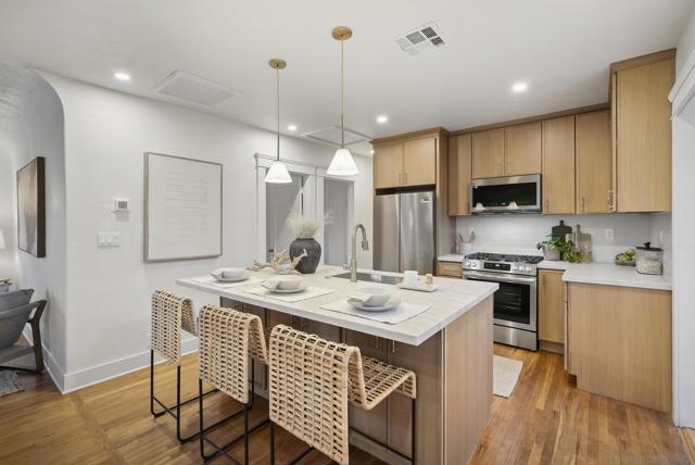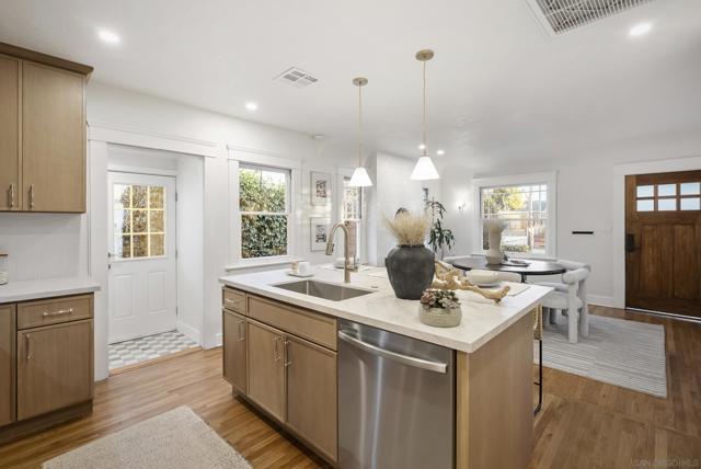 Timeless North Park Craftsman | Fully Renovated | Blocks from Morley Field Welcome to a rare opportunity to own an original Craftsman in the heart of North Park, just blocks from Morley Field and moments from the neighborhood’s best coffee shops, restaurants, and boutiques. This thoughtfully restored three-bedroom, two-bath residence blends old-world character with modern refinement. The exterior maintains its classic Craftsman charm, while the interior has been completely renovated with carefully curated finishes that honor the home’s era without compromising comfort. Original hardwood floors flow throughout, complemented by a brand-new kitchen featuring custom cabinetry, designer hardware, high-end appliances, and intentional details that feel timeless rather than trendy. Every major system has been upgraded, including new roof, new plumbing, new electrical, and central heat and air conditioning — offering true peace of mind. The expansive primary suite is a retreat of its own, complete with a spacious walk-in shower, double vanity, and direct access to a private outdoor patio. A second outdoor space off the kitchen creates effortless indoor-outdoor living — perfect for entertaining, morning coffee, or dining under the San Diego sky. Additional highlights include alley access with a dedicated parking space and beautifully finished design touches throughout. Located just a short stroll to Morley Field’s trails, tennis courts, dog park, and open green space, this home is ideal for those who value walkability, outdoor living, and the vibrant North Park lifestyle.