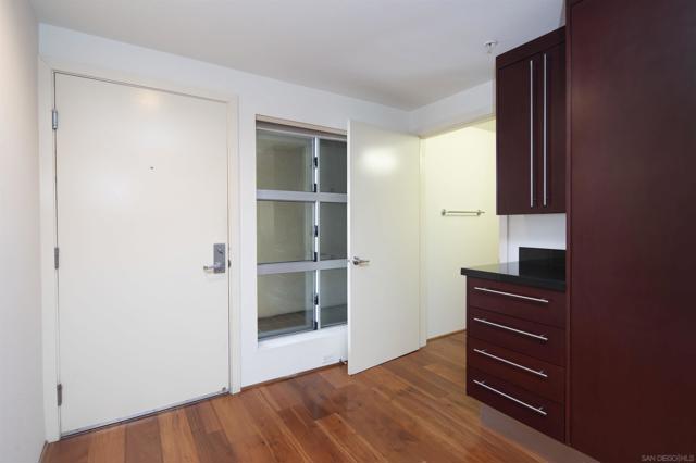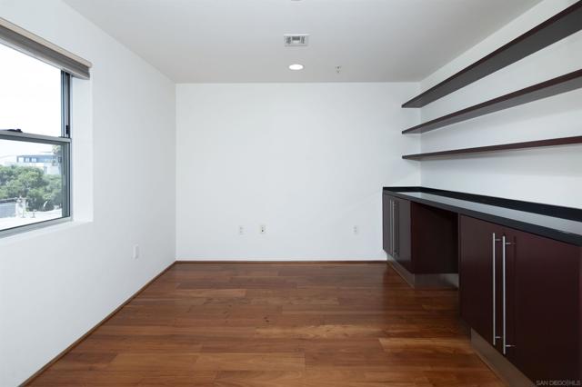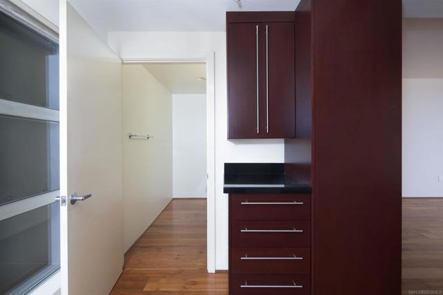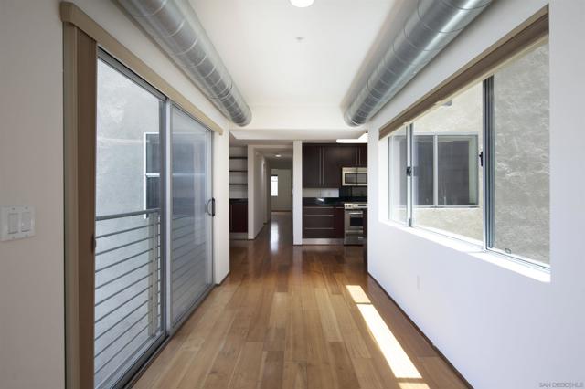 FINESTRA Lofts - Unit 302 is in the heart of Little Italy, Downtown San Diego. This large single-level condo features 1,611 SF with 2 bedrooms, 2.5 bathrooms, a modern kitchen with breakfast area, and built-in storage. Amenities include hardwood floors throughout, granite countertops, stainless steel appliances, in-home laundry, and abundant built-ins. Excellent layout for LIVE/WORK. Secure Google Webpass high-speed internet $35/mo). Assigned underground parking accessed via auto-lift ($175/month). EV charging available. Small pets accepted upon approval with pet deposit and pet rent. Convenient location close to the freeway, airport, Petco Park, San Diego Trolley, Gaslamp Quarter, marina, and ferry to Coronado. Tenant pays electricity, internet and cable. Application fee $65. ONE MONTH FREE RENT with one-year lease. Available Now.