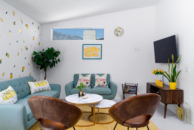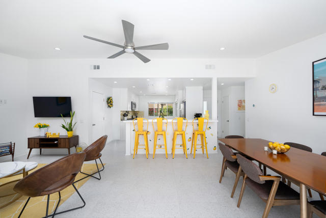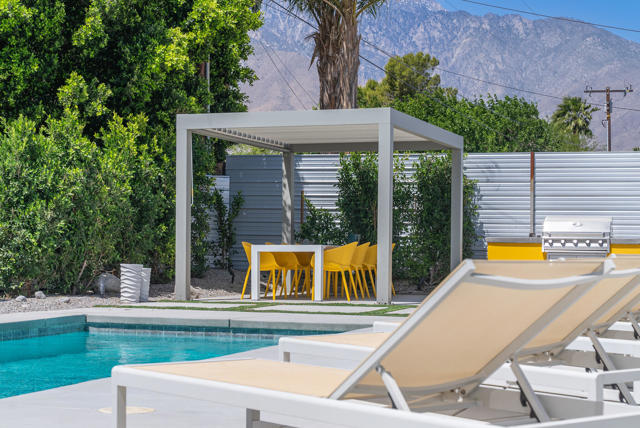 Located in Desert Park Estates, this beautifully updated 3-bedroom, 2-bath mid-century home is available for long-term lease only and is designed with entertaining in mind. Offered fully furnished with a stylish mid-century modern vibe, the home is turn-key just pack your toothbrush and flip-flops. The kitchen comes stocked with stainless steel appliances, microwave, coffee maker, toaster, and a full-size washer and dryer for your convenience. Step outside to your private desert retreat featuring a south-facing oversized pool and spa, built-in BBQ, fire pit, and multiple lounging and dining areas perfect for hosting friends or relaxing under the stars. (Please note: some outdoor furnishings shown in photos have been removed.) Rent includes WiFi, trash service, landscaping, and pool maintenance. Tenant is responsible for water, gas, electric, and cable. One small dog may be considered with owner approval and a $500 deposit. Click on this link for application: https://apply.link/nd_7JAU