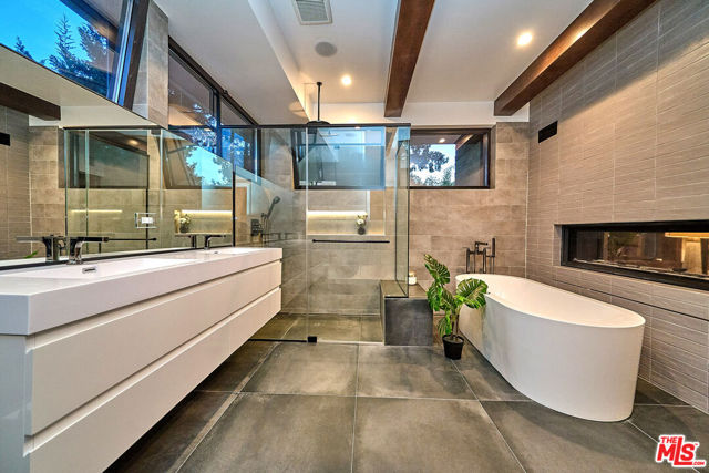 Experience the pinnacle of modern luxury in this brand-new, three-level architectural masterpiece, meticulously designed to harmonize sculptural form with high-performance function in a coveted hilltop setting. Anchored by a striking facade of Vale-engineered cedar and Porcelanosa tile, the residence opens into a luminous, open-concept interior featuring Italian oak floors, soaring ceilings, and a floor-to-ceiling travertine wall with a dual-sided European Home Element gas fireplace. The chef's kitchen is a culinary triumph, boasting a Bosch Benchmark appliance suite, induction cooktop, and porcelain countertops centered around a generous island. Effortless indoor-outdoor flow is achieved through European-imported windows and collapsible glass doors that lead to breathtaking canyon views. The primary retreat offers a chevron-timbered ceiling and a spa-inspired ensuite with a Whirlpool soaking tub and Italian tilework, while additional ensuite bedrooms and a versatile lower-level laundry studio provide ample space and direct access to a private hillside sanctuary.