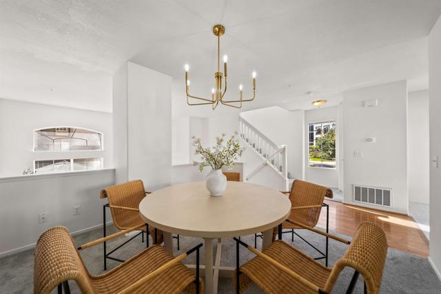 End unit in Wateridge, this unique property offers 5 additional windows which flood the interior with natural light. Clean and turnkey ready it offers hardwood floors and carpeting throughout, washer, dryer and refrigerator, new stove, new dishwasher, and an over-sized two car garage. The Wateridge community facilities include a pool, spas, tennis courts, sand volleyball courts, tot-lot, fitness trail and an enormous 86,000 square foot private park. Wateridge is surrounded by a multitude of high tech businesses in the rapidly growing Sorrento Valley corridor as well as being a 5 minute drive to UCSD and a 10 minute drive to beaches.