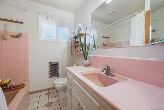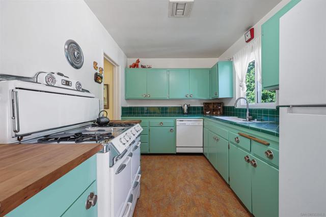 This home is a mid-century modern time capsule. The kitchen retains almost all of its original mid-century charm. The countertops feature the original bright green tile of the era. It retains all its original cabinets and the original chrome round knobs. The main bathroom is also a stunning example of mid-century modern style, with its original pink tile counters and tub, which is a soothing reminder of a bygone era. The house was occupied by its original owner until 1998 and has had only one other owner since then. Welcome to 6110 Amaya Drive, a delightful three-bedroom, two-bath single-family home nestled in one of La Mesa’s most convenient and desirable neighborhoods. Built in 1955, this residence blends classic mid-century charm with comfort and functionality, offering approximately 1,215 square feet of living space on a 6,900-square-foot lot. Inside, you’ll find a bright and inviting floor plan with the original hardwood floors throughout, featuring a spacious living room with picture windows, a cozy brick fireplace, and an easy flow into the dining area and kitchen. The kitchen provides ample cabinetry and counter space, ideal for everyday living or entertaining guests. Each of the three bedrooms offers natural light and privacy. step outside to enjoy fruit trees and a private backyard for barbecues, entertaining, or enjoying the San Diego sun. Plenty of room for gardening with native plants throughout, with a herb garden. The two-car attached garage provides convenient access and additional storage options. A new roof has been installed at the property in January.