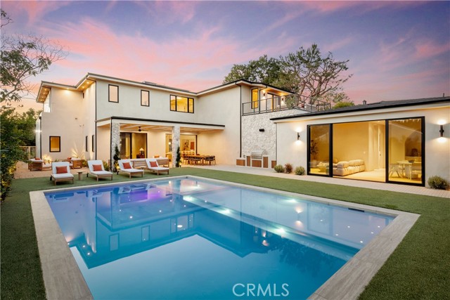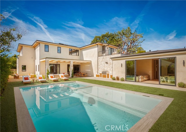 Brand new construction in prime Valley Village, offering approximately 6,500 square feet of refined living space on a prominent corner lot, located within the coveted Colfax Charter Elementary School district. The main residence features 5 spacious bedrooms and 5.5 bathrooms, designed with scale, functionality, and elevated finishes throughout. A striking modern exterior opens to expansive interiors flooded with natural light, wide-plank flooring, custom millwork, and seamless indoor-outdoor integration. The open-concept layout flows effortlessly from formal living and dining areas into a true chef’s kitchen outfitted with premium appliances, an oversized statement island, custom cabinetry, and abundant storage. A separate prep kitchen provides additional workspace and catering flexibility, ideal for entertaining at a high level while keeping the main kitchen pristine. Designed for today’s lifestyle, the home also includes a private office, perfect for remote work or executive use, and a dedicated theater room for an immersive at-home cinema experience. Upstairs, generously sized en-suite bedrooms offer comfort and privacy. The primary suite is a standout retreat, complete with a spa-inspired bath and expansive dual walk-in closets, thoughtfully designed his-and-hers spaces that elevate everyday living. The backyard delivers a true resort feel with a sleek pool, multiple lounge areas, covered patio space, and a built-in BBQ for effortless hosting. Positioned on a corner lot, the property maximizes both privacy and usable outdoor space. Completing the estate is a fully detached 2-bedroom, 1-bath ADU, ideal for guests, extended family or a studio space. Located within the highly acclaimed Colfax Charter School district and close to major studios, dining and shopping along with easy Westside access, don't miss this rare opportunity to own a large-scale, turnkey residence.