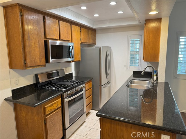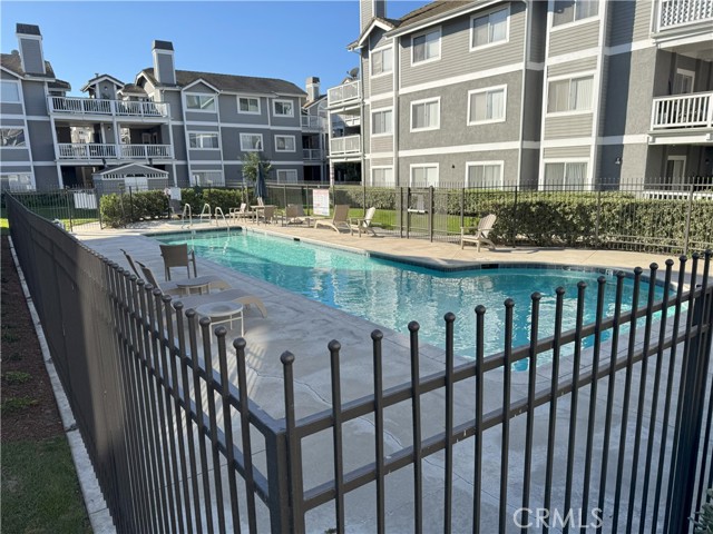 Welcome home to this cute condo in the gated Greenbrier Terrance! This upgraded 2 beds, 2 baths, 862 sqft condo is in an excellent located on the ground-level near ample guest parking. It also has a detached 2 car garage. As you walk through the front door, you’ll be instantly greeted by its astonishing open floor plan. It includes a bright living area withmfresh contemporary color walls, soaring 9ft+ ceilings and a dining area with ceiling fan. This unit has A/C and Heating, and tile floors in kitchen and baths. The gourmet open kitchen boasts dazzling granite counter tops/breakfast bar, lots of custom cabinets and stainless steel appliances. Yes, there’s inside laundry for convenience. The generously sized bedrooms feature mirrored closet doors. The secondary bedroom is just steps from the guest bath. The master bedroom features dual closets and a private master bath. This home also features a huge covered patio just steps from the pool and spa, great for entertaining!