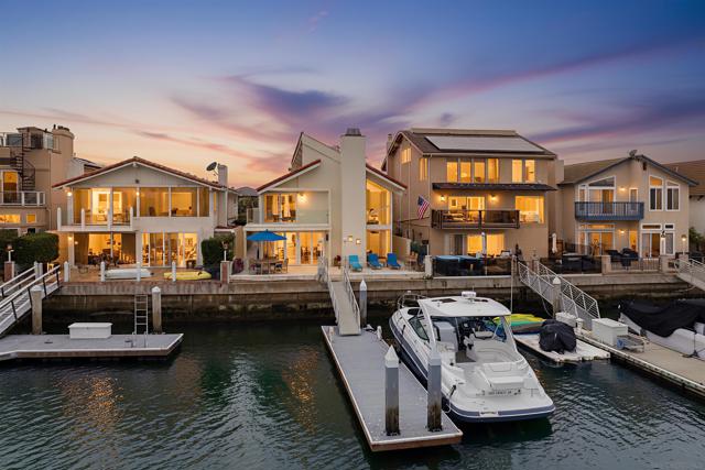 This beautiful home features 3 bedrooms/4 bathrooms, boasting a vaulted entry & an open floor plan perfect for indoor/outdoor entertaining. Spacious Loft is great for an office. The property includes a large patio right on the water, offering direct access & a private boat dock. Wharfage is capable of accommodating a 75' yacht. Situated on a spacious channel, it provides breathtaking sunset & panoramic views. The home also includes a luxurious primary bedroom suite with views from the balcony. Must see to appreciate.