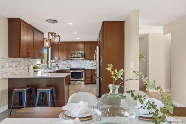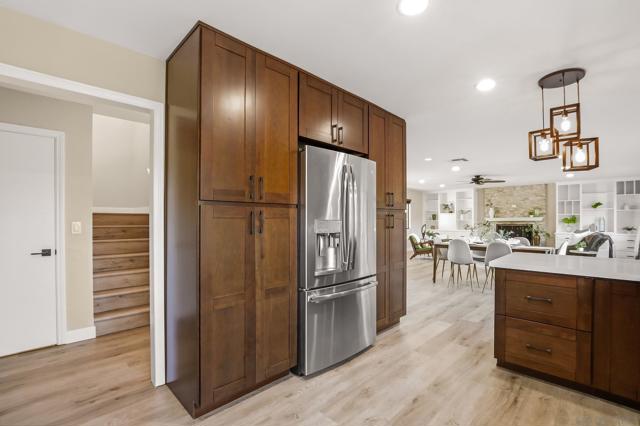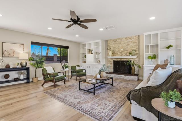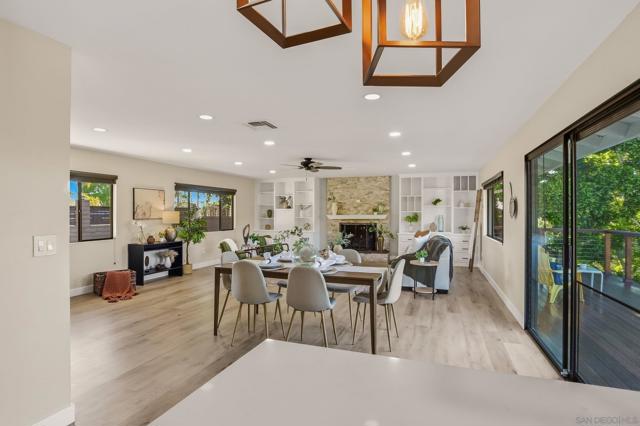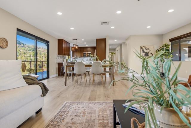 Incredible canyon views set the tone for this beautifully updated 4-bedroom, 3-bath Mt. Helix home. Designed with both comfort and connection in mind, the open-concept kitchen, dining, and living spaces feel inviting yet refined. A striking fireplace framed by custom built-in bookshelves anchors the main living area, creating a space that feels equally suited for quiet evenings or lively gatherings. The kitchen and bathrooms have been thoughtfully updated with clean, modern finishes, while a walk-in closet in the primary suite adds everyday practicality. A whole-house water softener and other behind-the-scenes improvements provide comfort you’ll appreciate long after move-in. Step outside to a recently rebuilt deck that captures sweeping canyon views. It’s easy to imagine mornings with coffee overlooking the valley or evenings unwinding as the light fades over the hills. Privacy and functionality come together with an automatic gated entry, full perimeter fencing, and an expansive driveway leading to a two-car garage. There’s generous space for RV or boat parking, recreational vehicles, or hosting guests with ease. A rare combination of views, upgrades, and usable space in one of Mt. Helix’s most sought-after settings.