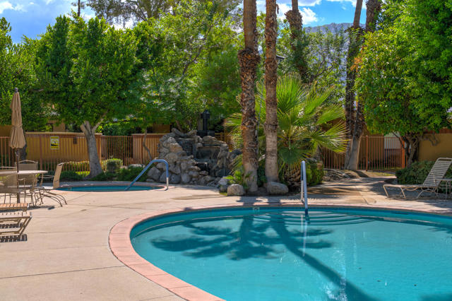 Once part of the exclusive Racquet Club, this single level, remodeled 'villa' blends iconic Palm Springs style with comfort and convenience. Offering 1083 ft. of light-filled living space, the residence features high ceilings, window and sliding glass doors that open to two spacious private patios, perfect for morning coffee or evening entertaining. Set in one of the community's most desirable interior locations, the home enjoys fantastic mountain views, proximity to covered parking, resort-style pool & spa, all while remaining sheltered from street noise. Inside, the flexible floor plan includes an large primary suite with direct patio access, plus a versatile bonus room easily adapted as guest space, office or den, complete with its own bath. The updated kitchen offers stainless steel appliances and an ideal pass-through for seamless indoor-outdoor dining. In-unit laundry room for convenience, and the gated community welcome pets with its own dog run. With just 20 residences, Racquet Club Colony is both intimate and exclusive. Whether seeking a personal retreat, seasonal escape, or an income producing investment, this property is a rare find in one of Palm Springs' most desirable enclaves.