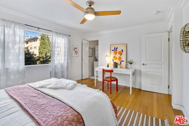 Live the quintessential Westside lifestyle in this stylish and serene one-bedroom, one-bath condo located in the heart of Brentwood. 6-12 MONTH FULLY FURNISHED OPTION AVAILABLE. This bright corner unit offers an open and airy layout with abundant natural light, bamboo wood and tile flooring, and a spacious living room that opens to a street facing balcony. The modern kitchen features granite countertops, stainless steel appliances, and a brand-new Samsung stove/oven, perfect for cooking and entertaining. Enjoy the convenience of IN-UNIT LAUNDRY (closet in bedroom), ample storage, and one covered parking space. The building offers resort-style amenities including a pool, sauna, and a newly updated fitness center (2020). Freshly painted and move-in ready, this condo is moments from Brentwood's trendy restaurants, shops, UCLA, and with easy access to Santa Monica, Westwood, and major freeways.