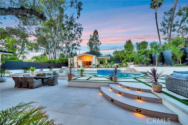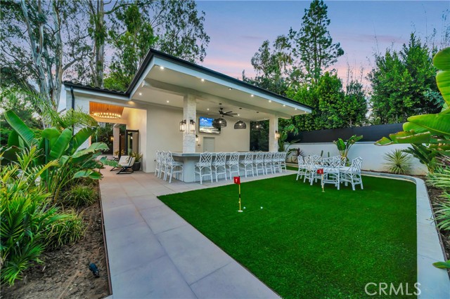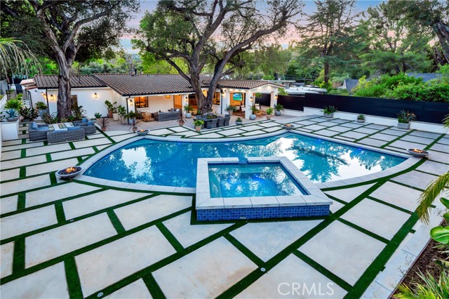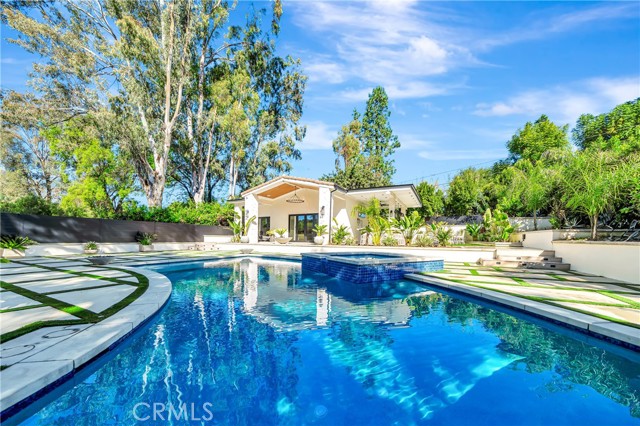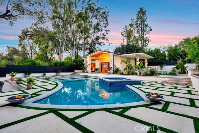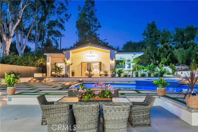 Brand-new private resort-style estate offering approximately 6,500 sq ft of single-story luxury living on an expansive 28,000 sq ft flat lot, south of the Boulevard in one of Tarzana’s most sought-after neighborhoods. Fully gated and set within a prestigious enclave of luxury homes, this property delivers exceptional privacy, security, and lifestyle. The main residence features 5 en-suite bedrooms and 6 bathrooms, with each bedroom designed as a private retreat. Offered fully furnished with high-end designer pieces and true turnkey convenience. The expansive commercial-grade chef’s kitchen is equipped with top-tier appliances, built-in refrigeration, and oversized prep space ideal for entertaining. Additional highlights include multiple fireplaces, integrated premium sound system, and 11 TVs throughout. Resort-style grounds include a stunning pool & spa with Baja shelf, multiple fire pits, six outdoor lounge areas, commercial-grade BBQ station, private putting green, and parking for up to 10 vehicles. A detached guest house with private entrance offers a full kitchen, living area, laundry, and private suite ideal for guests, extended family, or staff. Prime location near golf courses, scenic hiking trails, top-rated schools, shopping, dining, and just one mile to the 101 Freeway. Easy access to LAX and a short drive to the coast. A rare fully furnished luxury lease opportunity in the heart of Tarzana.