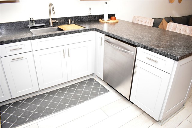Absolutely lovely one level upgraded condo with 1 bed and 1 bath. Remodeled kitchen with lots of counter space and a breakfast bar opening to a lovely living room with a slider to the balcony. The bedroom is spacious and has ample closet space. The bathroom is remodeled with an oversized shower. 2 uncovered tandem parking spaces, 23 and 24. Community laundry facilities are conveniently located on each floor and all this on a quiet cul de sac. This unit is ready to move in
