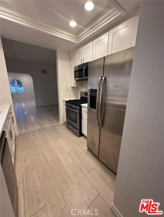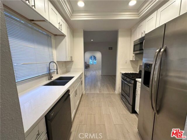 Fully Renovated 2BD/2BA in Prime Beverly Hills LocationFirst-floor front unit in a charming Spanish Colonial Revival fourplex. This bright and beautifully updated 2-bedroom, 2-bath home features stainless steel appliances, quartz countertops, brand-new cabinetry, an extra-deep stainless sink with designer pull-out faucet, LED recessed lighting, and new hard-surface flooring throughout. Freshly painted with updated bathrooms and modern fixtures.Enjoy central heating and air, in-unit washer and dryer, dishwasher, and a spacious dining area perfect for entertaining.Located within blocks of parks, shopping, restaurants, entertainment, and public transportation. Situated in the highly sought-after Beverly Hills School District. Water and trash included in rent.Street parking only (Beverly Hills permits available up to 3 based on vehicle ownership).