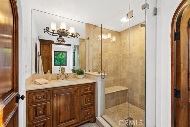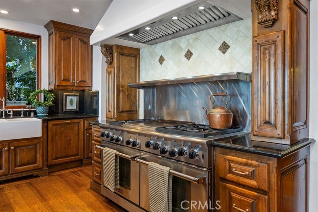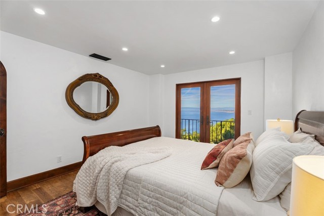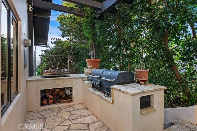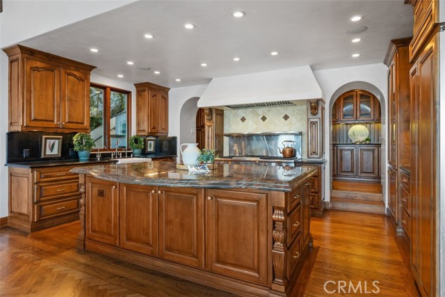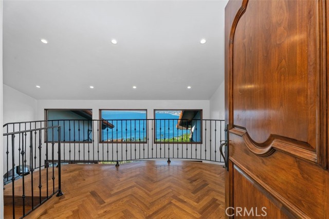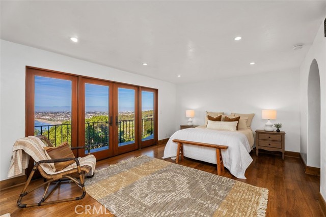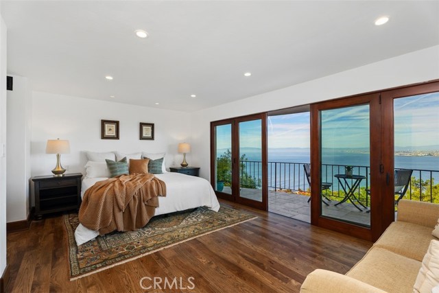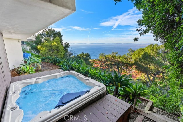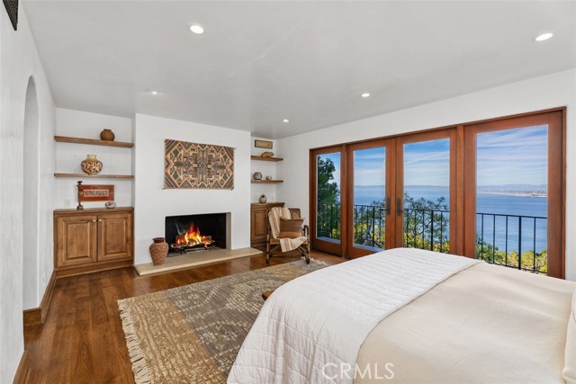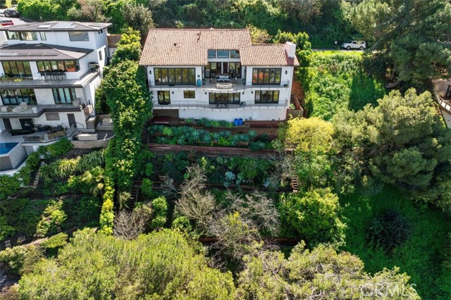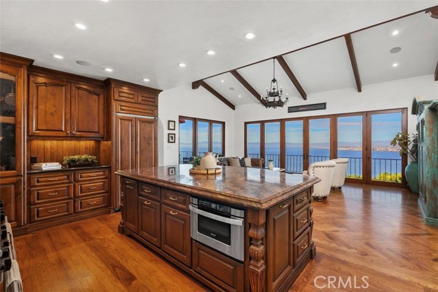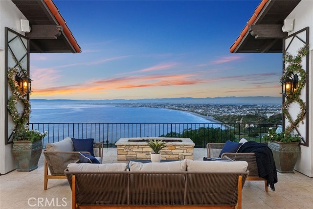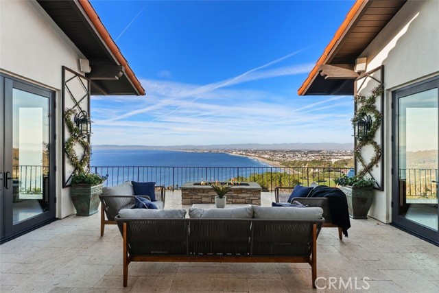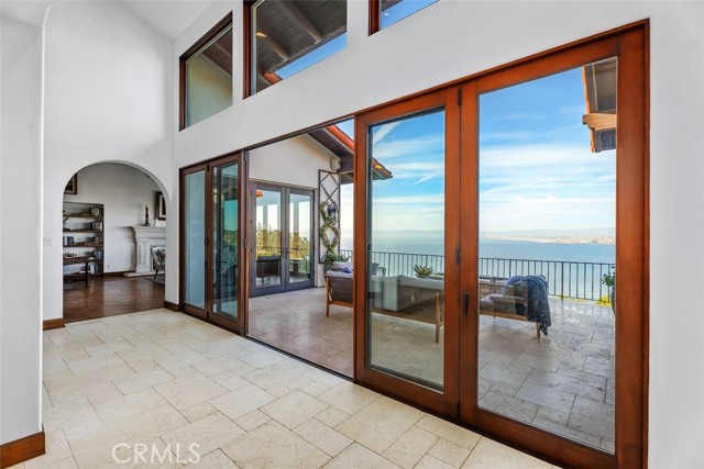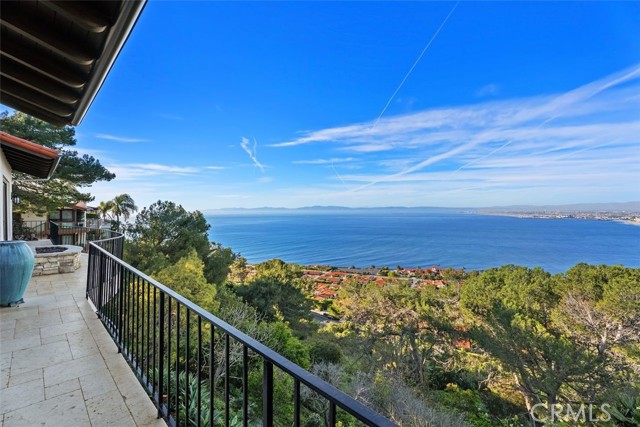 A rare opportunity to own one of Malaga Cove’s most compelling view properties, this custom, Spanish-inspired estate captures panoramic Queen’s Necklace and white-water ocean views while enjoying exceptional privacy adjacent to parkland within Palos Verdes Estates. Completed in 2025, the full remodel blends timeless architecture with modern infrastructure and artfully appointed finishes, including white smooth plaster walls with a Venetian wax finish, expansive 8-foot bifold doors spanning 15–18 feet, custom-sized milled hickory pecan herringbone flooring, limestone floors in Versailles and herringbone patterns, and solid glazed alder cabinetry with extensive built-ins. Designed as a true culinary pavilion, the ocean-view kitchen opens to the family room and sits adjacent to the dining room for seamless entertaining. It features premium appliances, dual sinks, dual dishwashers, two refrigerator/freezers, including a 60-inch commercial unit, and generous prep space. A fully equipped dirty kitchen supports effortless hosting, while the exterior kitchen — complete with built-in smoker/BBQ, Argentinian grill, and a 60-inch wood-fired pizza oven — extends the experience outdoors. The dining room showcases a striking glass-encased wine cellar with a cellar pantry and abundant wine glass storage, opening to a patio with a gas fire feature overlooking the coastline. A beautifully appointed living room with a fireplace provides refined comfort nearby. The lower level offers a private retreat with a luxurious primary suite capturing breathtaking panoramic coastline vistas. The spa-inspired bath includes an 8-valve shower system with an oversized 8x24-inch main shower head and additional wall heads, plus warm flooring throughout. A custom primary closet completes the suite. Additional bedrooms provide privacy for family or guests. Below, a serene spa overlooks the coastline and a lush orchard featuring avocado, cherry, plum, apricot, apple, Meyer lemon, Baer lime, mandarin, blood orange, Buddha’s hand, Seville orange, pomegranate, fig, nectarine, peach, donut peach, guava, and bay leaf. A private path leads directly to the walking trail below. With fully upgraded water, sewer, gas, electrical, and heating systems, upsized water lines, and exceptional additional storage, this residence delivers rare views, privacy, craftsmanship, and elevated coastal living.