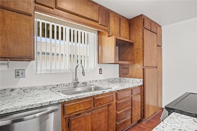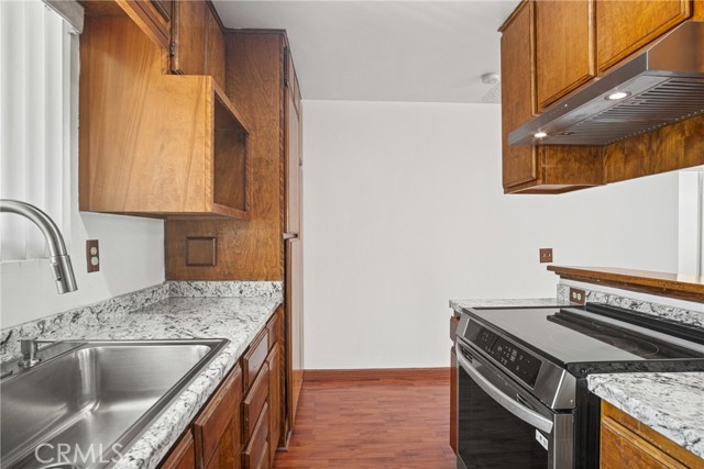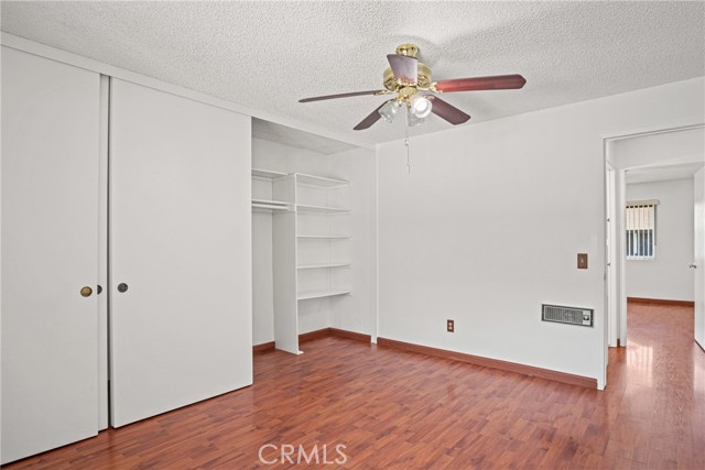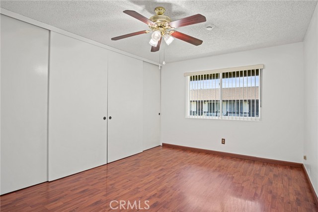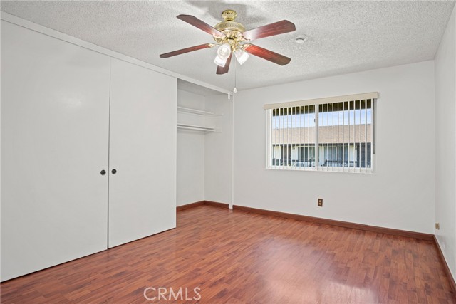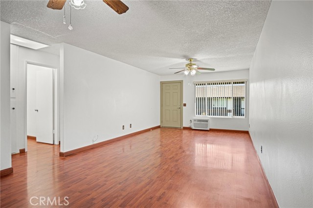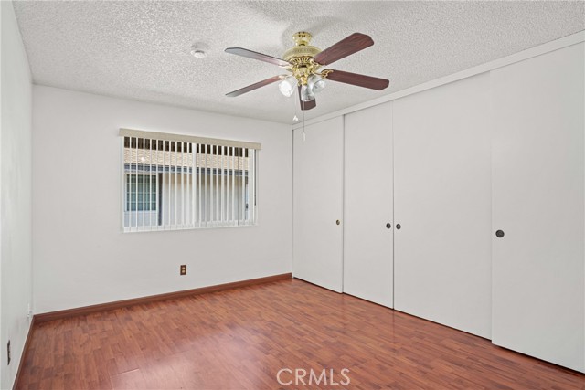Welcome to this beautifully updated 2-bedroom, 1-bath home offering 825 square feet of comfortable living space in a gated community. Recently refreshed with new interior paint and laminate wood flooring throughout, this move-in ready unit combines modern upgrades with everyday convenience. The fully renovated kitchen features a brand-new countertop, oversized single-bowl sink with a stylish arching pull-out faucet, new garbage disposal, new dishwasher, and a new LG electric induction range with a brand-new range hood. There is also a designated cabinet space for a microwave with a seperate space for tackable Washer and dryer hookups to add extra functionality. The spacious living room includes a newer wall A/C unit and ceiling fan for year-round comfort. Updated window treatments with vertical blinds are included throughout. The bathroom was renovated approximately 2–3 years ago and features a walk-in shower, new vanity, updated light fixtures, new toilet, and upgraded exhaust fan. Brand-new smoke and carbon monoxide detectors have been installed in each bedroom and common sleeping areas for added safety. Community amenities include a pool, relaxing spa, lounge chairs with umbrellas, BBQ area, benches, and a convenient app-operated laundry facility located near the pool. A wonderful opportunity to own a thoughtfully upgraded home with resort-style amenities.