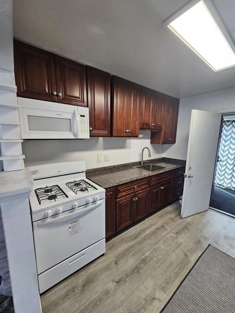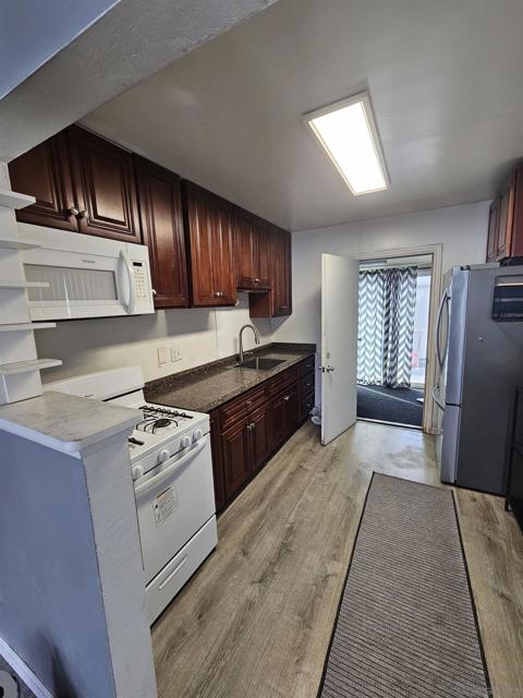Remodeled, sweet corner-lot home is convenient to shopping schools, 805 freeway. Kitchen includes refrigerator. Two spacious bedrooms.