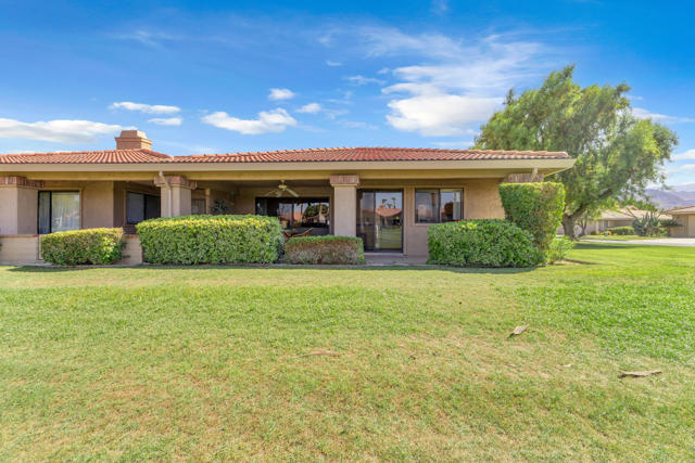 AVAILABLE JAN AND FEB 2025. BOOKED MARCH AND APRIL 2026. New flooring and repainted. 3 bedroom/3bath corner unit overlooks the golf course and putting green and is in move in ready condition with furnishings. This beautiful unit features neutral ceramic tile through the spacious great room with fireplace (bed being added to the third bedroom). Chaparral Country Club is a gated community located in the heart of Palm Desert. The Club offers a full service Restaurant, 8 lighted tennis courts, par 60 golf course, 21 pools and spa, bocce and pickle ball courts. Located only 2 miles away from El Paseo with unparalleled shopping and dining. Golf Course Membership is reasonable. Available to move in at the end of April 2025!