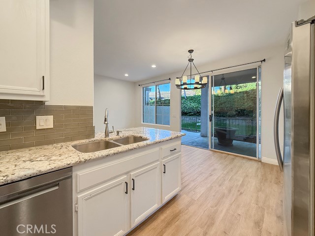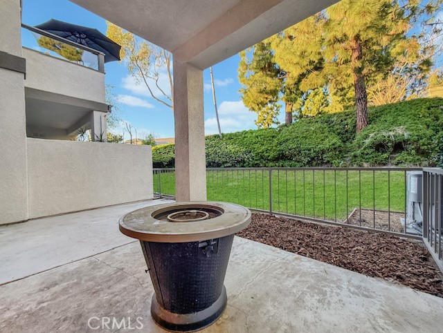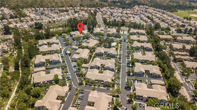 Welcome to this beautifully updated 1 bedroom 1 bathroom home located in the desirable Salerno community of Foothill Ranch. This home has been recently refreshed with new interior paint, brand new baseboards, and features an open concept layout with recessed lighting, an updated fireplace, and a kitchen that opens to the living room area with stainless steel appliances, a brand new microwave, updated fixtures, and a breakfast counter where you can pull up stools to create a casual dining area. The spacious bedroom includes mirrored closet doors with a built-in organization system, while the large bathroom offers ample storage with soft-close drawers. Enjoy the partially covered patio that backs to peaceful hillside greenery, providing added privacy and serene views. The washer and dryer are conveniently located in the private outdoor laundry closet and are included. This home also offers one of the largest detached one car garages in the community with built in storage, plus ample guest parking. Residents enjoy close proximity to the community pool, spa, and BBQ area, as well as exceptional outdoor amenities just across the street, including a park, a variety of sports courts and fields, scenic hiking and biking trails, and a nearby library. Convenient shopping, dining, and entertainment options just minutes away.