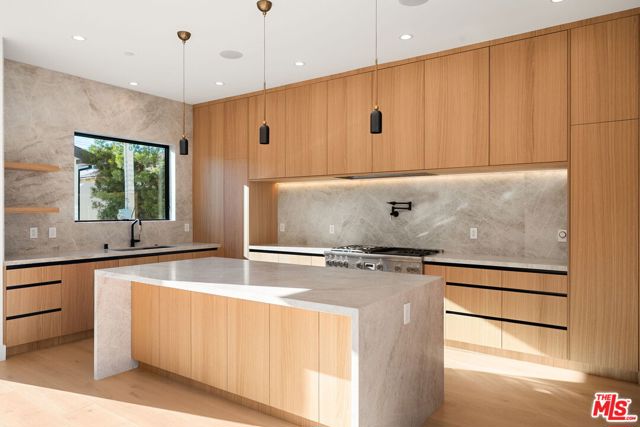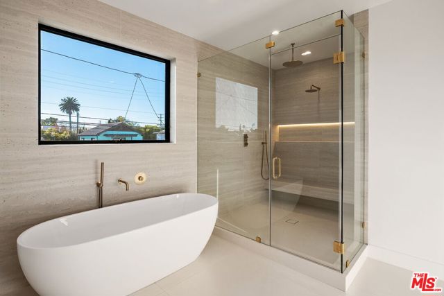 A striking fusion of contemporary design and natural elements, this newly built organic modern farmhouse offers an unparalleled living experience. Designed with seamless indoor-outdoor flow, the open-concept layout is bathed in natural light, boasting soaring ceilings and meticulous craftsmanship throughout. This fully automated smart home showcases exquisite European white oak flooring, custom rift white oak cabinetry, and hand-selected marble and tile, complemented by premium fixtures. The heart of the home is a chef's dream kitchen, featuring sleek custom-paneled Thermador appliances, an oversized waterfall island with Taj Mahal quartzite, and seamless integration with the spacious dining and living areas. A dramatic floating staircase adds architectural interest, while expansive glass doors open to a private entertainers paradise complete with a built-in BBQ island, lush green space, and ample room for gatherings. Upstairs, the serene primary suite is a true retreat, offering a cozy fireplace, a spa-inspired bathroom with a soaking tub, rain shower, dual vanity, and a generous walk-in closet. A private balcony overlooks the beautifully landscaped backyard, adding to the tranquil ambiance. Two additional en-suite bedrooms provide comfort and sophistication. Adding to the homes versatility, a separate 1-bedroom, 1-bathroom ADU with a full kitchen offers endless possibilities, ideal for guests, or a private office. Located in the highly coveted Mar Vista wood streets neighborhood, this rare gem offers an exceptional blend of style, comfort, and functionality. Available now! Private showings by appointment.