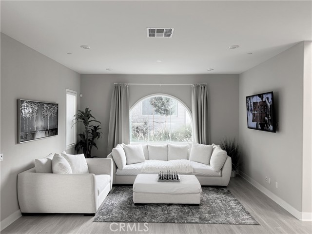 Tastefully upgraded Lennar Smart Home, detached 4 beds/ 3 baths. This stunning 3-story home is 2,798 square feet, with an astonishing view of the Great Park, Irvine Spectrum and trails; built in 2021. This home is beautifully situated on a premium corner lot, across from Bosque Trail and the future site of the Botanical Garden and Library of Irvine Great Park. Walking distance to Cadence Elementary School (K-8th) and minutes away from Portola High School, shopping/ dining, and the I5/133 Freeways. This home is equipped with solar panels, brand new washer and dryer, Monogram range, refrigerator and kitchen appliances throughout. The first floor features contemporary open floor plan with a coveted chef’s kitchen complete with larger island, pantry and high end appliances. Multi-panel sliding glass patio doors provide access to a private yard. A main floor bedroom across from a full bathroom can conveniently serve as a home office. The ground floor also includes an attached 2-car garage finished with a modern epoxy floor. The second floor features a spacious master suite and en-suite with dual vanity, soaking tub, rainfall shower, and large walk-in closet. Down the hallway with viewing windows, laundry room with sink, new washer/ dryer, and smart home hub, are two additional bedrooms and a dual vanity full size bathroom. Enjoy unobstructed views in the large 3rd floor loft and on the covered private balcony. The Great Park Neighborhoods is a growing community and boasts amazing biking trails, hiking trails, neighborhood parks, playgrounds, Great Park Ice & Five Point Arena, Wild Rivers Waterpark, and the local shopping locations of Irvine Spectrum and Woodbury Town Center. Just pack and move in!