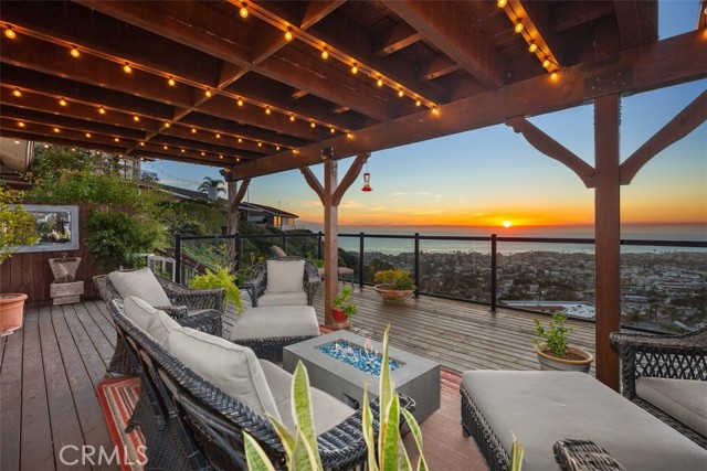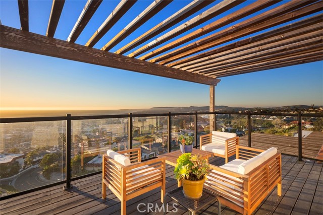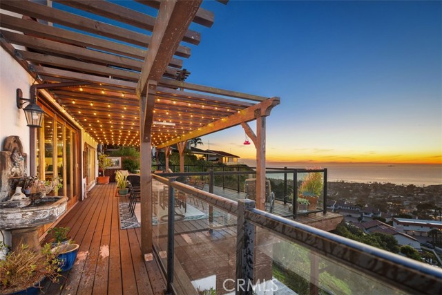 Spanish Revival Home on the Hill with Spectacular Ocean Views!!! This Luxurious Home offers Something for Everyone with Four Generously Sized Bedrooms, Multiple Privacy Decks and Views from Almost Every Room. Enter into the Private Courtyard and Bask in the Warmth of the Morning Sun. Cook and Dine in the Gourmet Kitchen which opens to the Formal Dining and Living Rooms with a Dual Sided Fireplace. Spectacular Sunsets are Revered from the Covered Deck with Outdoor Furniture to enjoy the Indoor/Outdoor Lifestyle of Southern California. The Primary Suite on the Upper Level has its own Private Viewing Deck, Fireplace and Remodeled Bath Complete Marble Counters, Custom Tiled Floors with Soaking Tub, Walk in Shower and Rooftop Deck. The Lower Level has its Own Entrance and offers a Private Abode. This Stunning Home has an Abundance of Features, all for the Discerning Appreciation of the Luxury Rental Market Clientele.