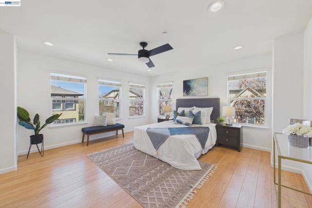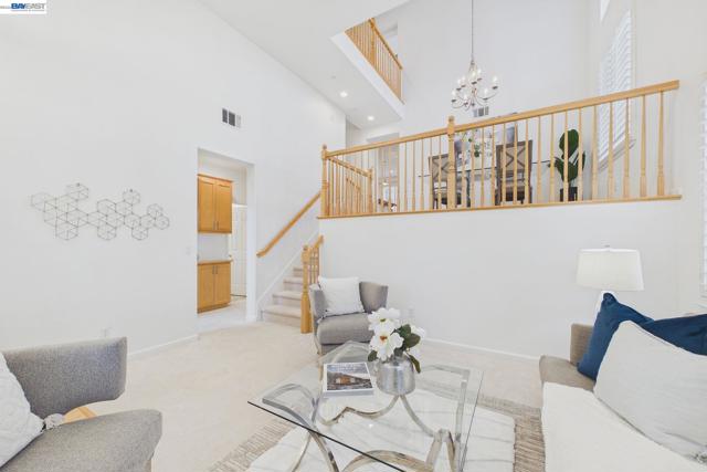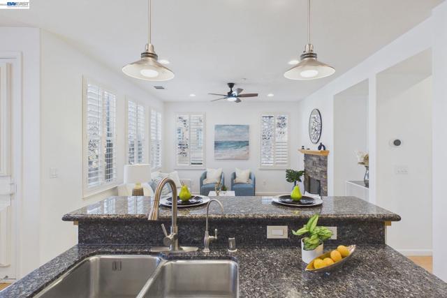 Welcome to this East Facing, Townhouse style, condo in the highly coveted Ambridge community of Windemere. This rarely available Corner Lot showcases Plantation Shutters & Laminate wood Floors. Greeted w/Soaring Ceilings & Formal Living Room upon entry, the main level also offers a highly sought-after bedroom & full bath. This modern floor plan features Formal Dining Room, & Family Room w/Gas Fireplace w/custom mantle. The Kitchen features Granite Countertops & Backsplash, Bar seating at Island, Stainless Steel Appliances & Breakfast Nook w/access to Private Patio. The upstairs level leads you to the Primary Suite w/Gorgeous ensuite bath offering a walk-in closet, Marble tile surfaces, 2 sinks, Stall shower & Soaking tub. This level also includes a Designated workspace in the hallway w/two secondary bedrooms & shared Full bath with tub. Laundry Room w/Ample Cabinets & Counter space. Attached two car garage equipped with 240EV charging capability. Featuring modern conveniences such as a water softener, a reverse osmosis system for purified drinking water. Walking Distance to HOA community Pool. Located near Top-Rated San Ramon schools, Easy access to Shopping/Dining, Parks & Hiking trails!
