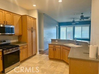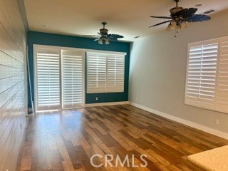 Charming Aspen Model. Welcome to this delightful 2-bedroom, 2-bathroom home located in the highly sought-after 55+ gated community of Sun City by Del Webb in Apple Valley. Hitting the market for the first time, this home offers a blend of modern flair and cozy charm. Step inside to discover a spacious open floor plan featuring new wood laminate flooring, upgraded baseboards and door trim, custom ceiling fans, and plantation-style white wood shutters throughout. The kitchen is the heart of the home, boasting newer stainless steel appliances, tile flooring, a sunny breakfast nook, and an open layout that flows into the living and dining areas—perfect for entertaining friends and family. The primary suite is a peaceful retreat, complete with a decorative shiplap accent wall, wood flooring, and a spa-like ensuite bathroom featuring a dual-sink vanity, tile flooring, a large walk-in shower, and a massive walk-in closet. The living room mirrors the primary suite’s charm with another beautiful shiplap accent wall and a soothing, neutral color palette. The split floor plan provides privacy for guests, with the secondary bedroom and bathroom offering comfort and convenience in their own separate wing of the home. Step outside to your low-maintenance backyard oasis, ideal for morning coffee or evening relaxation. The home is located within walking distance to the Aspen Clubhouse, where residents enjoy resort-style amenities including a fitness center, pools, and social clubs. Also nearby is the Mariposa Lodge, home to a new amphitheater that hosts concerts and community events. Outside the gates, you’ll find major shopping, dining, entertainment, hospitals, and everything you need just minutes away. This home won’t last long—schedule your showing today and experience all that Del Webb living has to offer! You must be 55 years or older in order to live in this home. Monthly rent will include HOA and Trash fees. Renter will need to set up their own water, gas and electric utilities on their own.