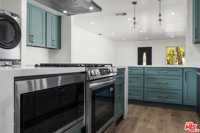 Discover the perfect blend of modern style and tranquil neighborhood living at 238 Thorne Street. Tucked away on a quiet cul-de-sac in Highland Park, this meticulously remodeled unit for lease offers a serene escape while putting you just moments away from the vibrant energy of Northeast LA. Enter into a spacious open-concept living area bathed in natural light. The home features seamless light wood vinyl flooring and a contemporary aesthetic that flows from the living room into the impressive kitchen. The kitchen is designed for both daily life and entertaining. Large quartz countertops paired with ample cabinetry for all your storage needs. A center island and a dedicated breakfast counter provide the perfect setup for morning coffee or casual dining. Brand new appliances, including a dishwasher, gas stove/range, a built-in microwave, a double door fridge with bottom freezer and a stacked washer and dryer. And that's not all, a separate area with additional cabinets perfect for a coffee bar with a built-in wine fridge! Enjoy lush hillside views directly from your kitchen window while you prep meals. Off the living room, there are two bedrooms and two full bathrooms. The primary suite is at the rear of the unit featuring a sleek, modern en-suite bathroom. Both bathrooms are updated with modern fixtures and contemporary tiling. While the interior is impressive, the private and expansive fenced-in front yard is the highlight of the property. Outfitted with modern turf, this space acts as an outdoor living room perfect for pets, al fresco dining, or weekend gatherings under the California sun. There's a large tree that provides shade. An additional private side patio off the kitchen offers more dining space and easy access for a barbecue. The property also includes two dedicated gated driveway parking spaces, a rare and valuable find in this neighborhood. This unit is part of a DUPLEX. There is second tenant occupied unit on the property.